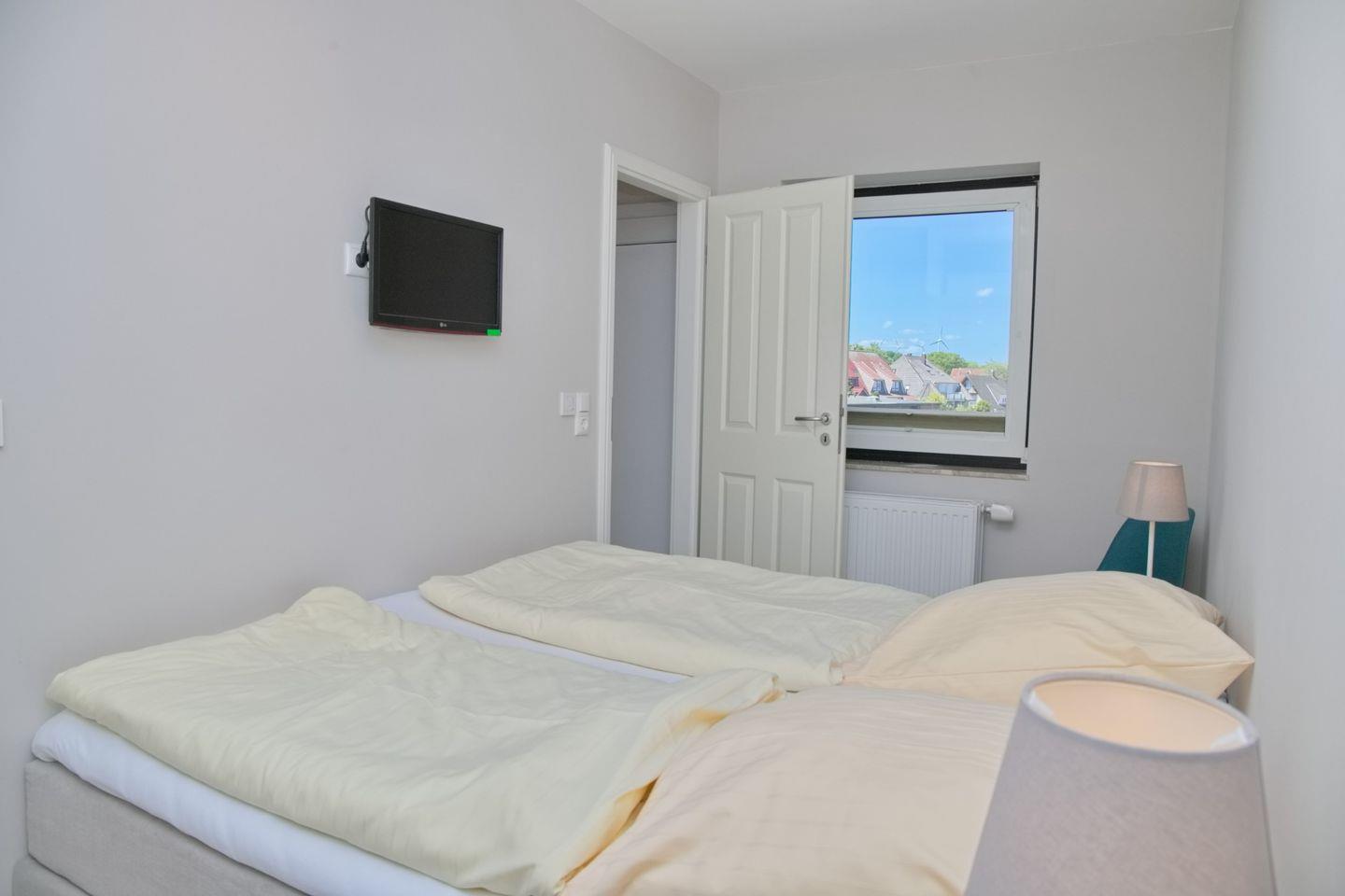 Im Hauptschlafzimmer finden Sie ein 180 x 200 cm großes Boxspringbett ( Taschenfederkern H2 )und einen großen Kleiderschrank. Ein gemütliches kleines zweites Schlafzimmer mit einem sehr schönen und bequemen skandinavischem Sofabett mit einer Schlafbreite von 140 cm ist ebenfalls vorhanden. Beide Schlafzimmer sind mit TV-Flatscreens ausgestattet.
