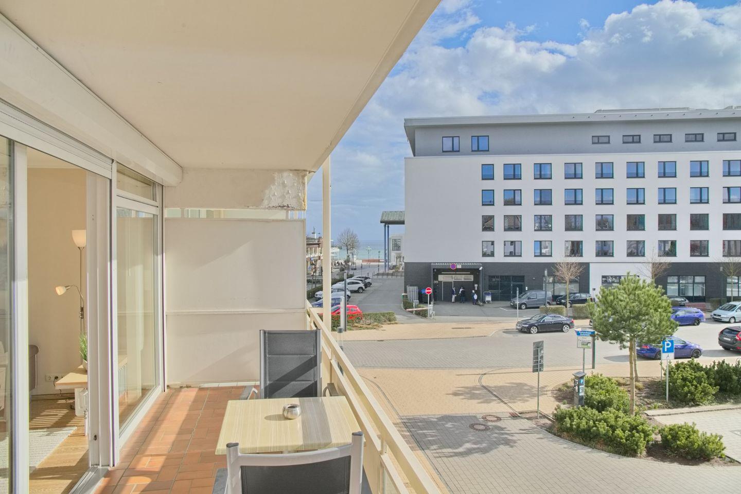 Gemütliche Ferienwohnung mit möbliertem Balkon und Teilseeblick, nur 250 m vom Strand in Grömitz entfernt.