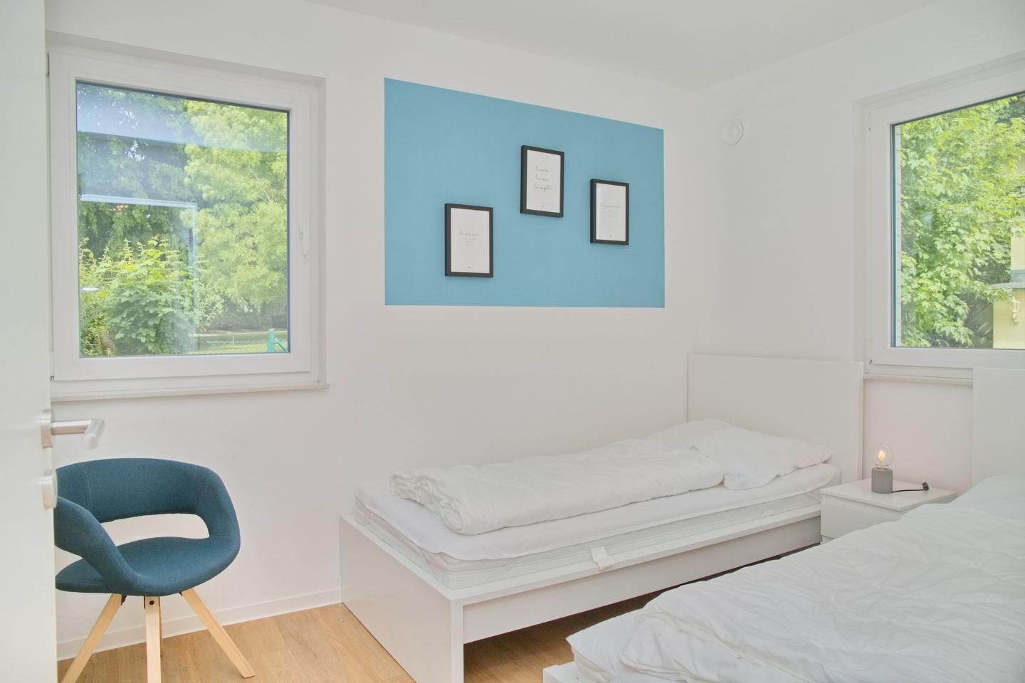Das zweite Schlafzimmer: Es empfängt Sie ein wertig gestalteter Raum. Auch hier dürfen sich Ihre Rücken auf ergonomisch-traumhaften Schlaf in Ihren Einzelbetten (ca. 90x200cm) freuen.