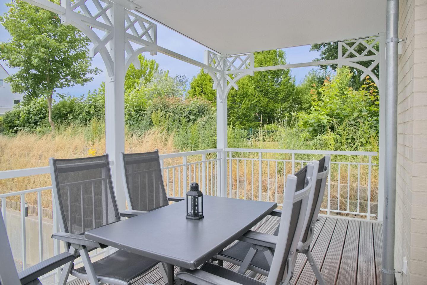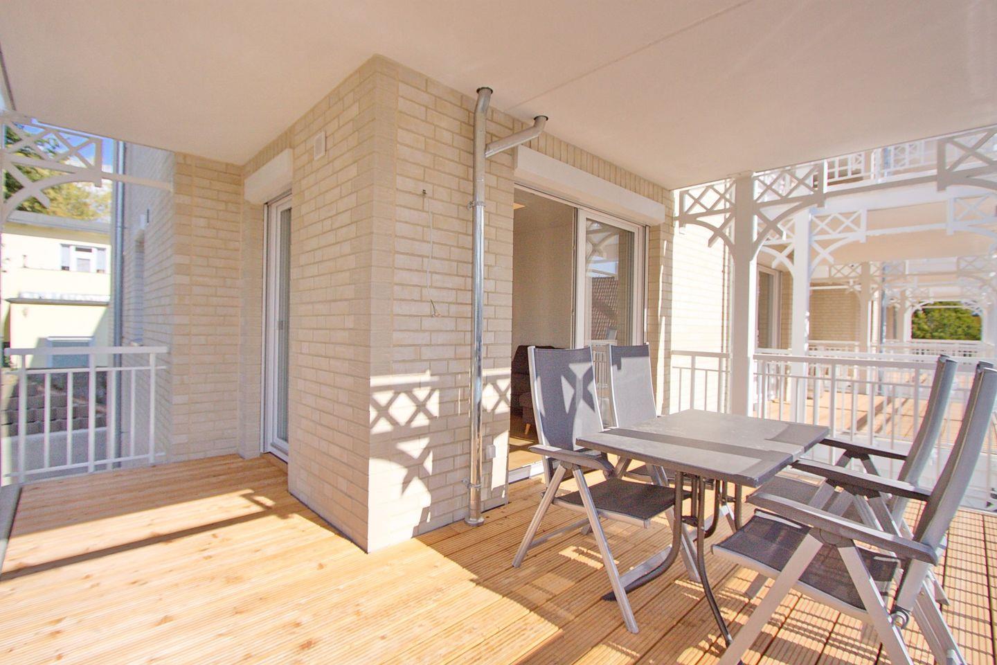 Auf Ihrem schönen Süd-/Westbalkon mit Gartenmöbeln blicken Sie in Richtung des angrenzenden Kurpark.