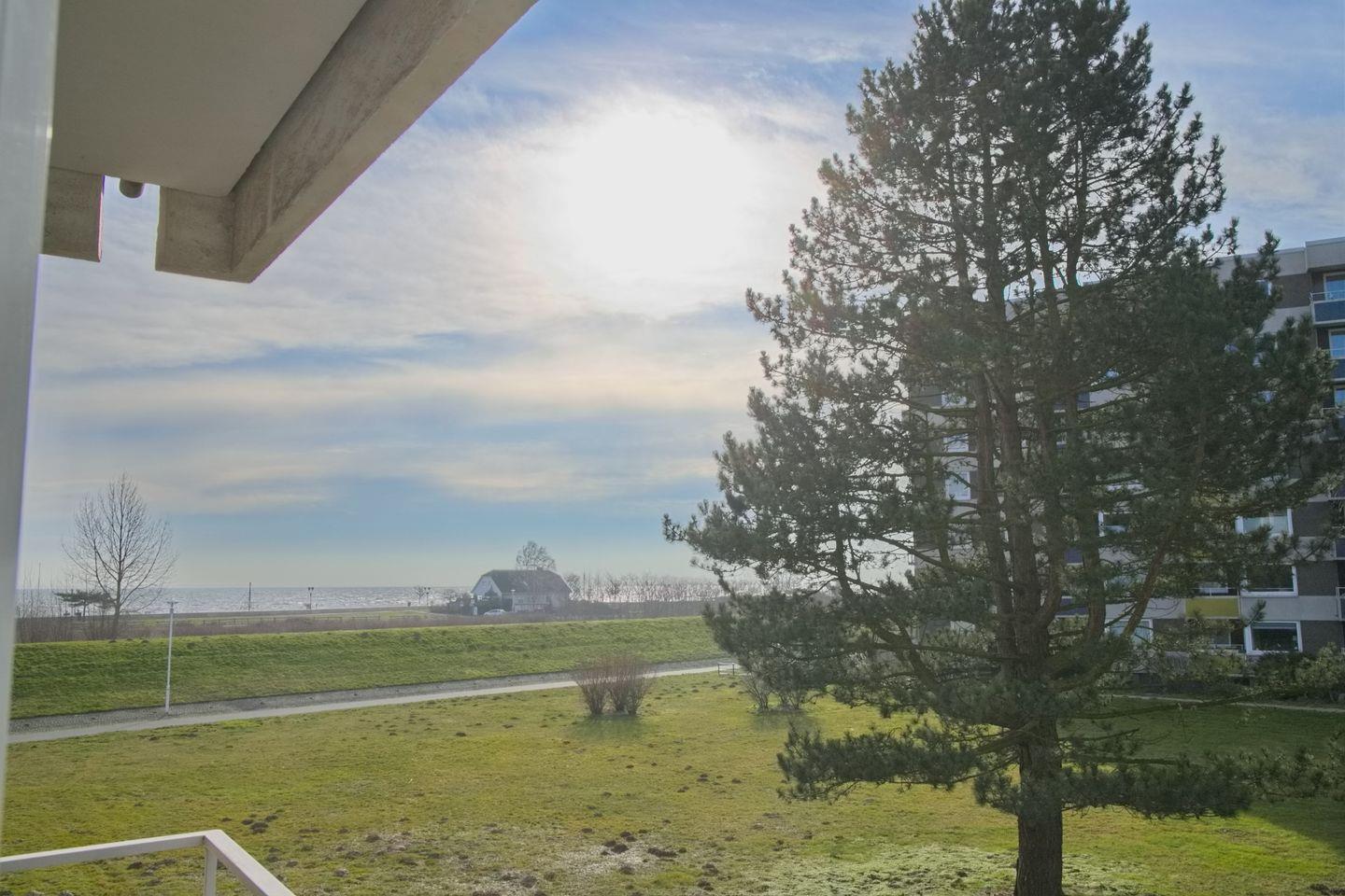 Hundefreundliche Ferienwohnung mit möbliertem Balkon und Seeblick in Westlage direkt hinter dem Deich in Grömitz.