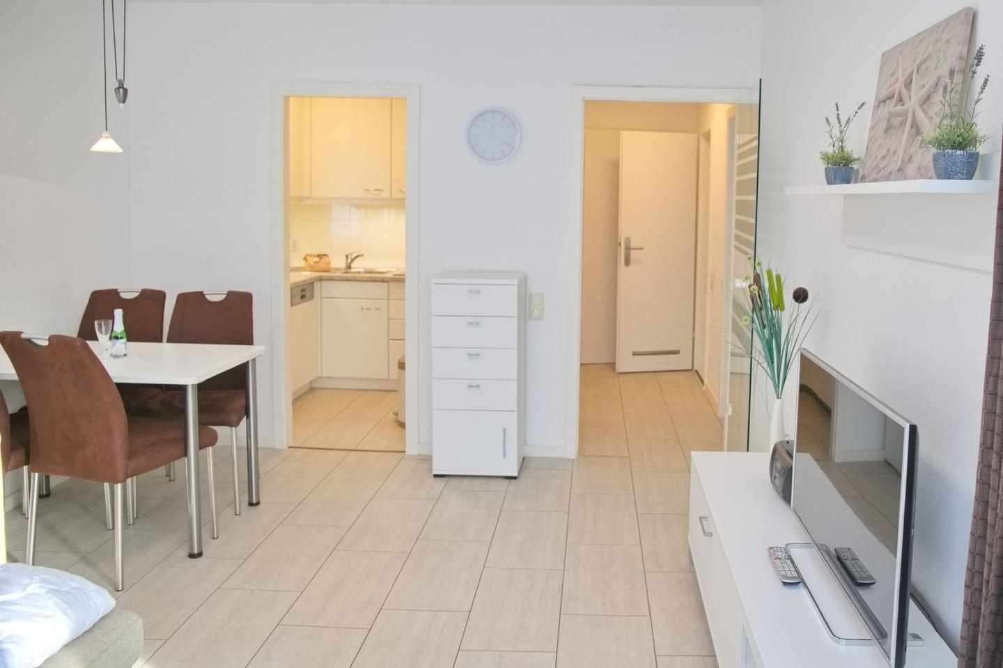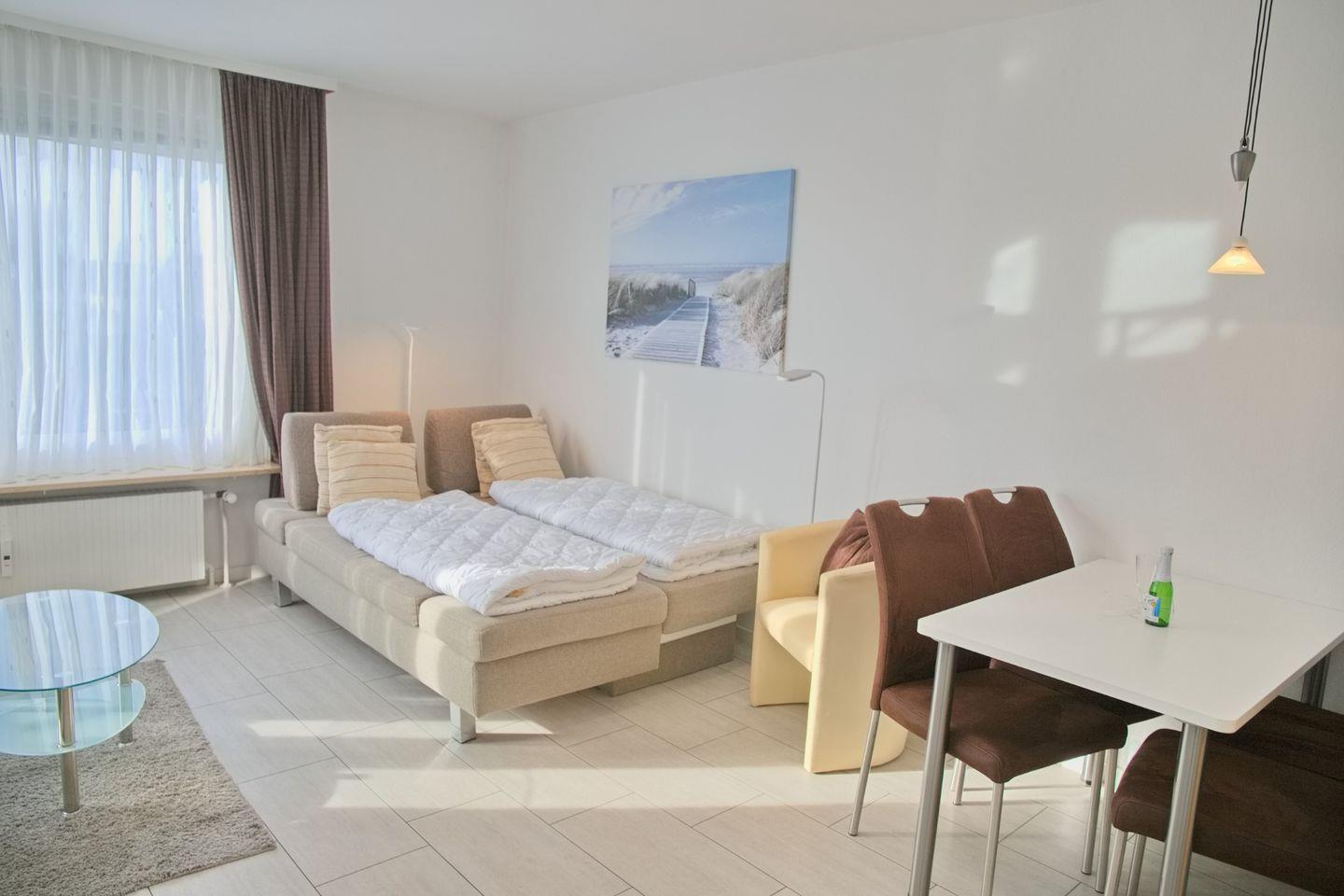 2-Zimmer-Ferienwohnung (ca. 43 qm) für bis zu 4 Personen im 1. Obergeschoss mit Seeblick in West Lage.