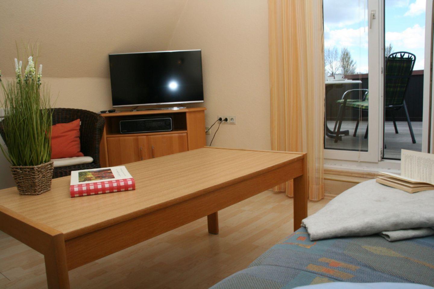 Das Wohnzimmer bietet Ihnen eine gemütliche Couchgarnitur mit Sessel. Zur Unterhaltung steht Ihnen ein großer Flach- TV und ein Radio zur Verfügung. Vom Wohnzimmer aus haben Sie Zugang zur großen möblierten Dachterrasse mit Lounge, von der Sie aus den Tag mit einem ausgiebigen Frühstück starten können, oder lassen Sie Ihren traumhaften Urlaubstag bei einem schönen Sonnenuntergang ausklingen.