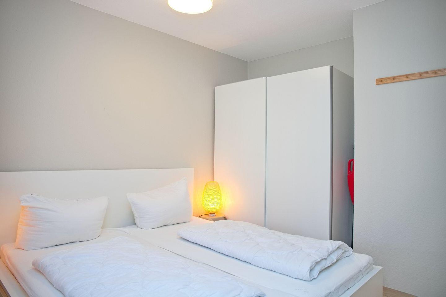 Das Schlafzimmer verfügt über komfortable Schlafmöglichkeiten. Ein weiteres Highlight der Wohnung ist das moderne Badezimmer mit Dusche, Waschbecken und WC. Für zusätzlichen Komfort sorgt die Waschmaschine, sowie die Möglichkeit, einen Trockner gemeinschaftlich zu nutzen. Sie treffen zudem auf eine praktische Garderobe und einen Wäscheständer, sodass Sie Ihre Sachen jederzeit gut verstauen können.