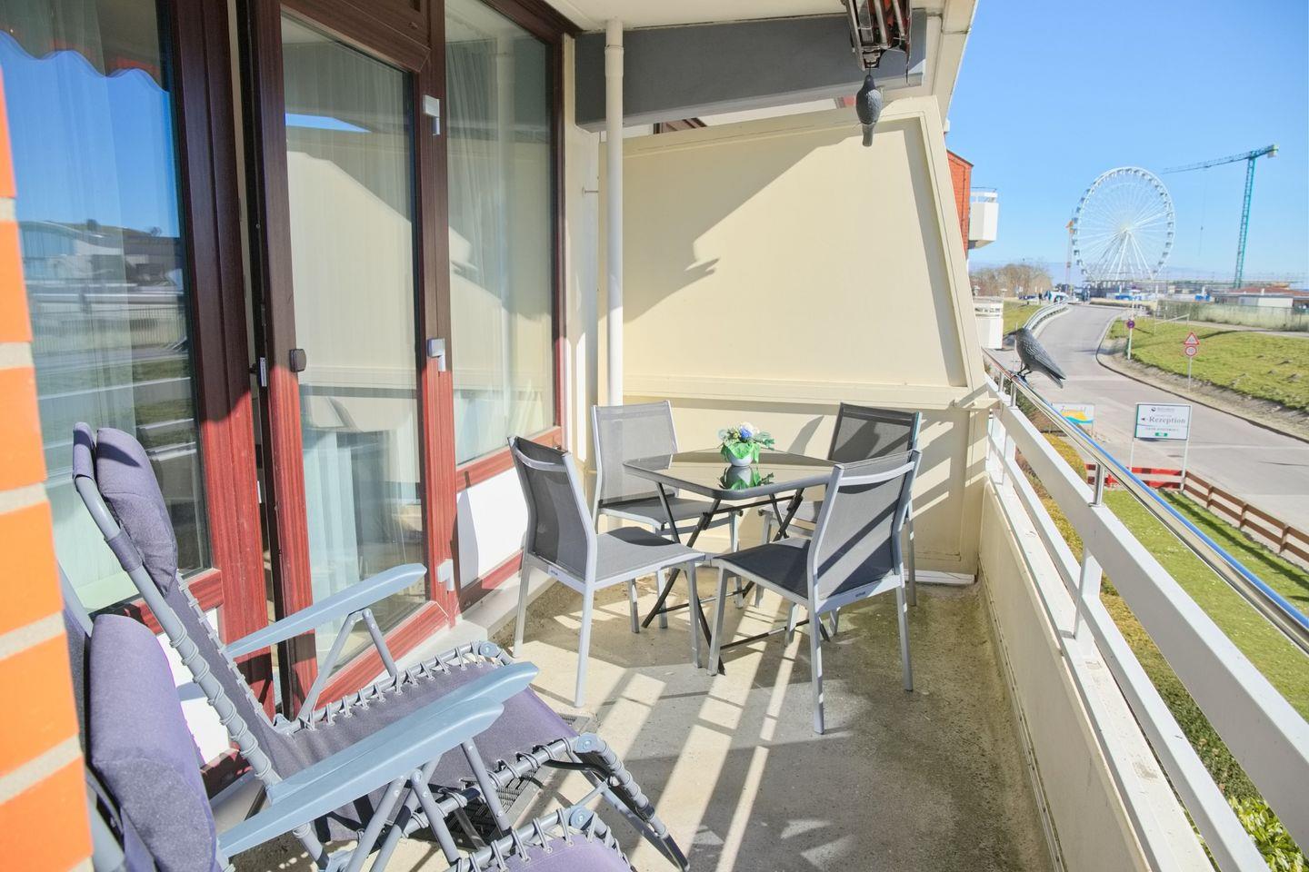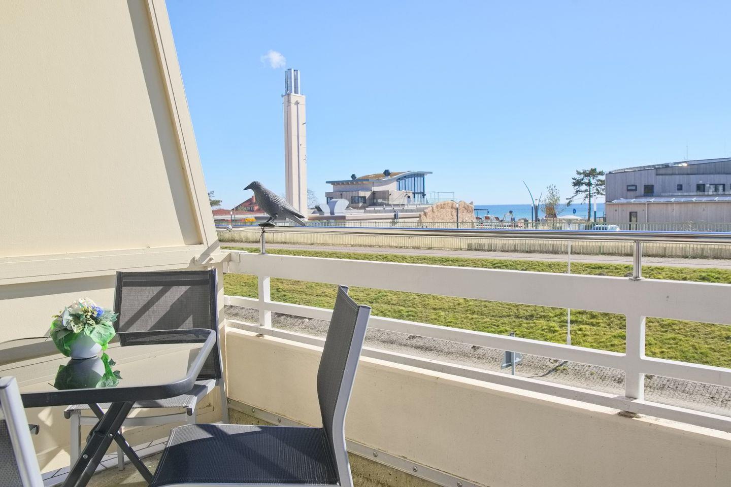 Sehr schöne 2 Zimmerwohnung inkl. WLAN. Vom möblierten Südbalkon genießen Sie einen sehr schönen Meerblick. 80 Meter von der Pomenade entfernt.