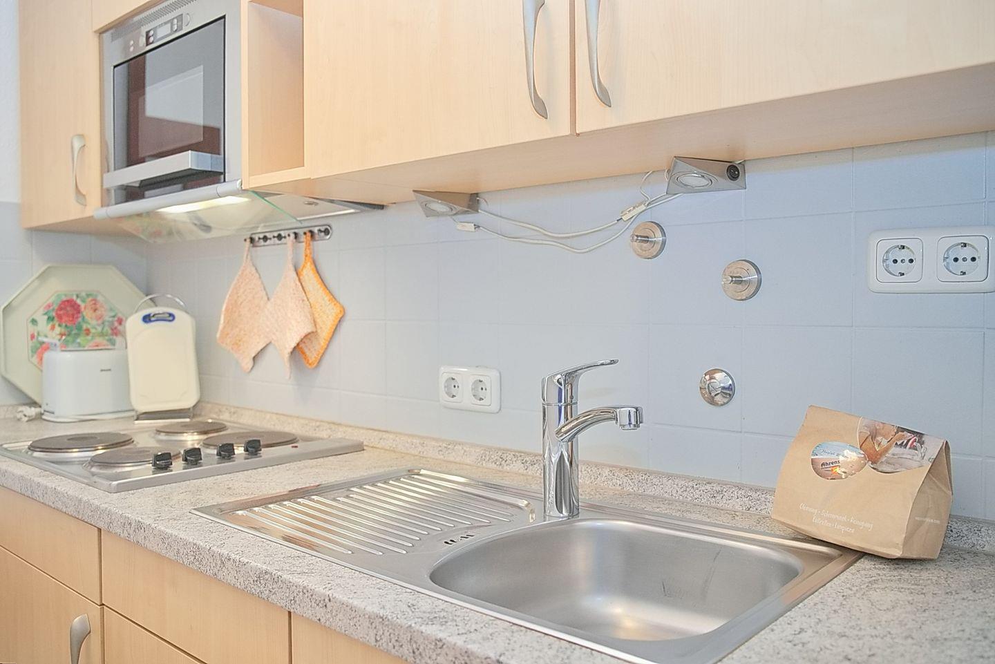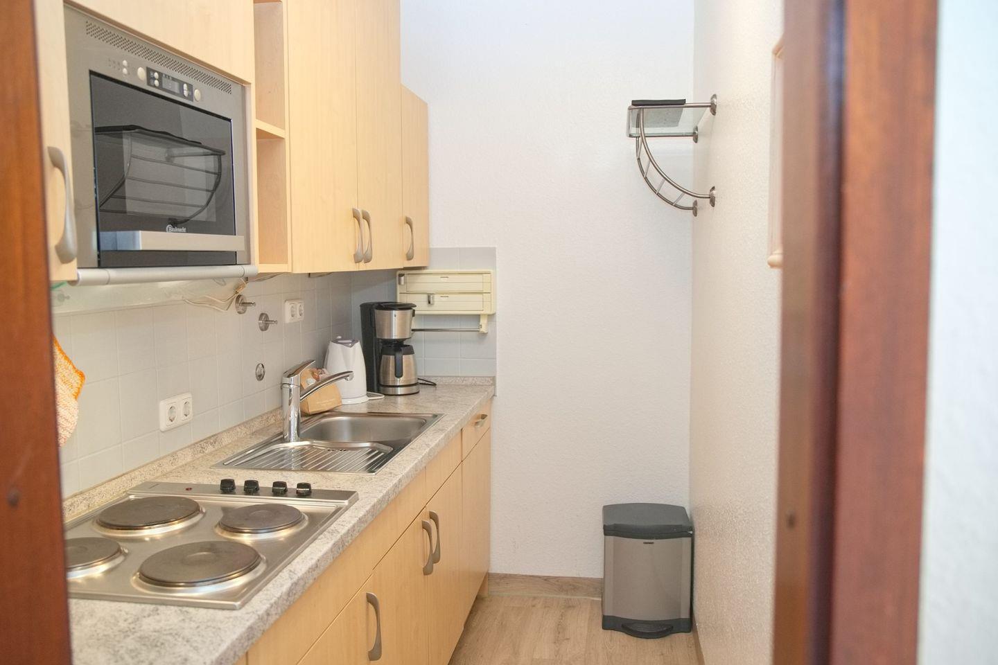 Die voll ausgestattete, geschlossene Küche lässt keine Wünsche offen. Mit einem 4-Platten-Herd, einem Kühlschrank, einer Spülmaschine, einer Kaffeemaschine, einem Wasserkocher, einem Toaster und umfangreichen Küchenutensilien steht Ihrer kulinarischen Kreativität nichts im Wege. Der Essbereich lädt zu gemeinsamen Mahlzeiten ein und bietet einen harmonischen Rahmen für gesellige Abende.