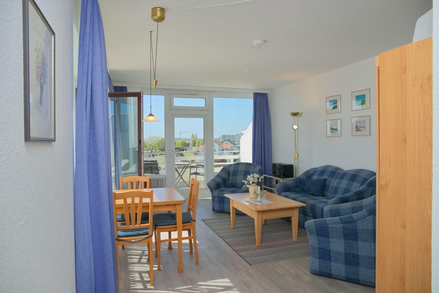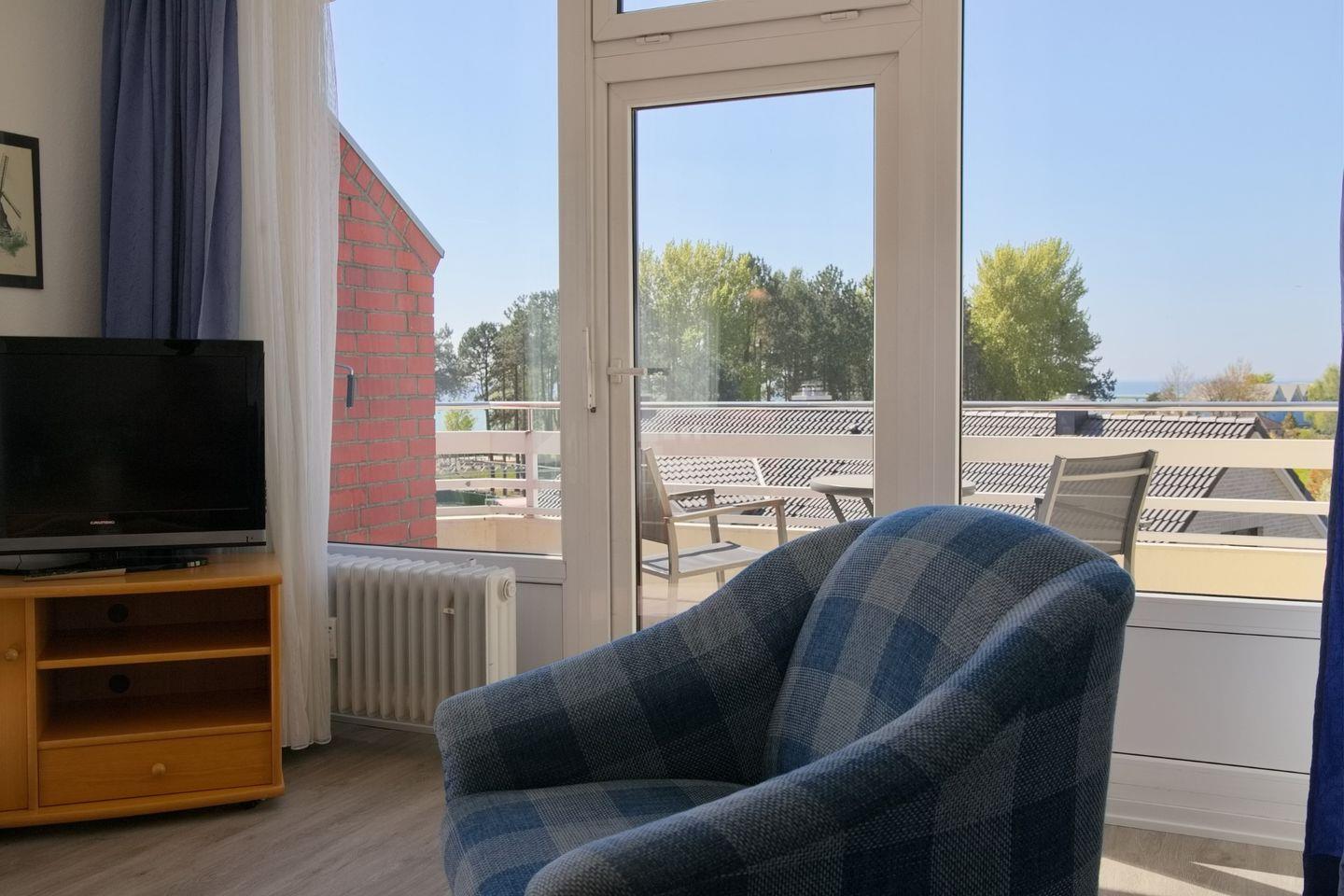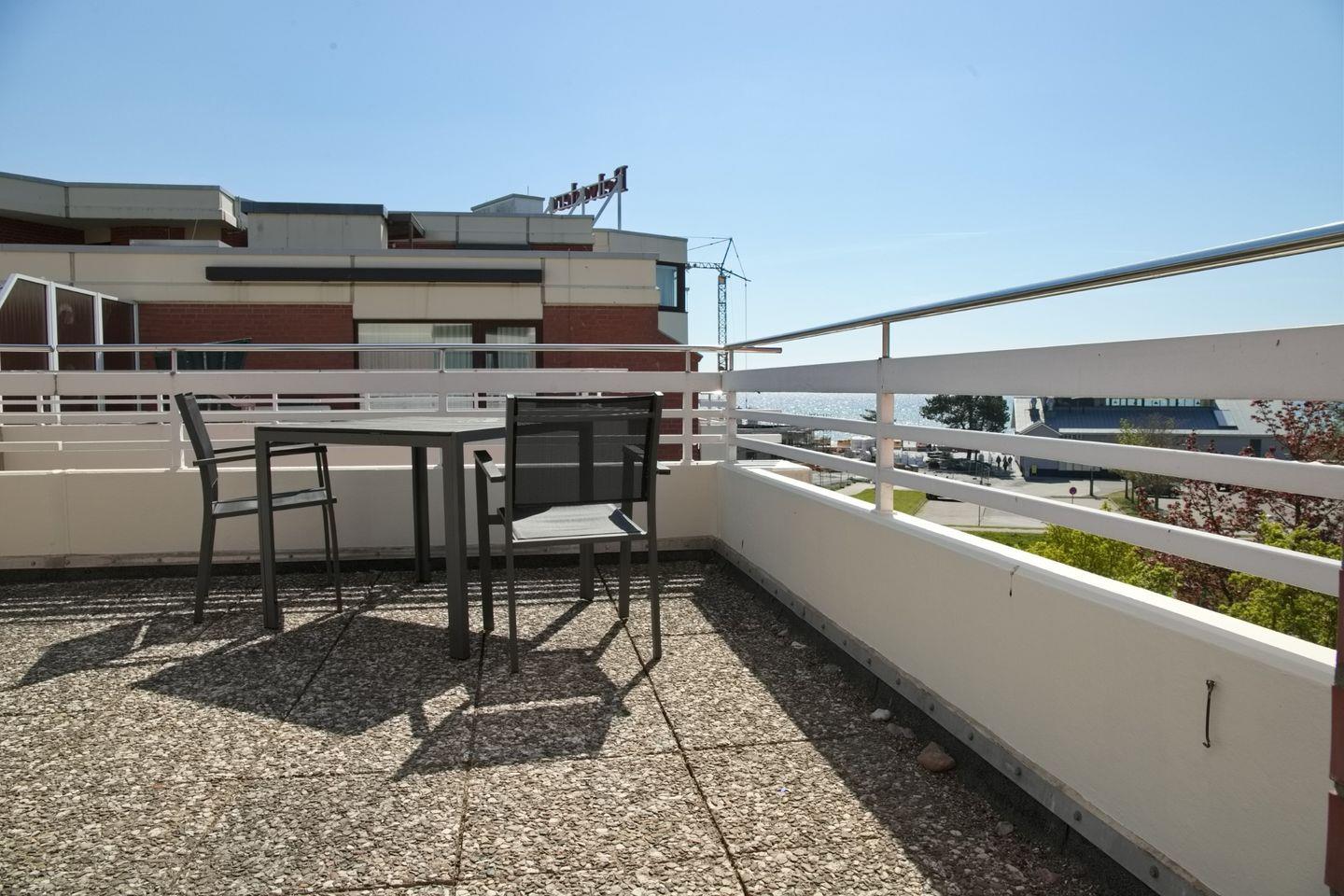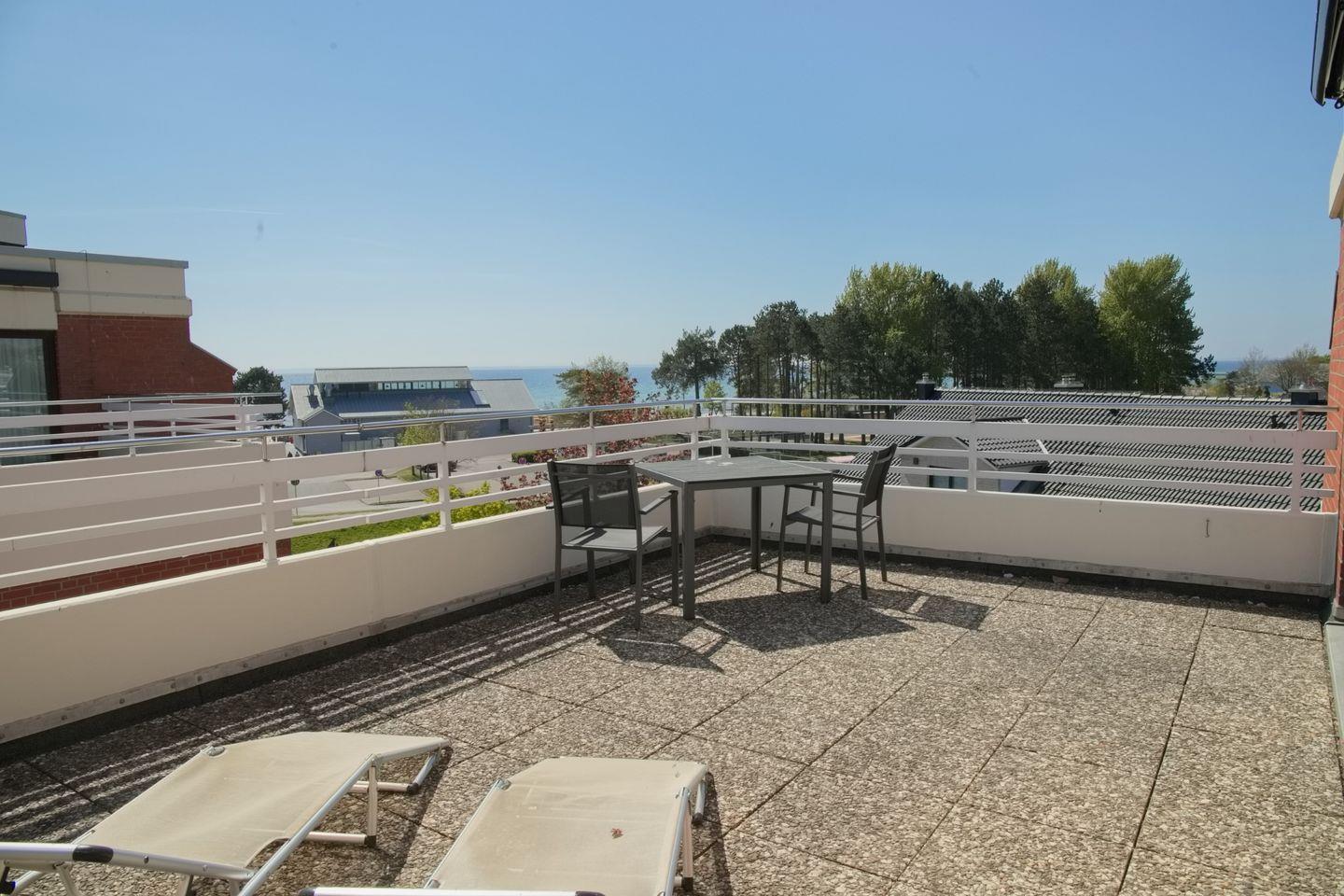 Gemütliche Ferienwohnung in Grömitz mit möbliertem Balkon und Dachterrasse mit Meerblick.