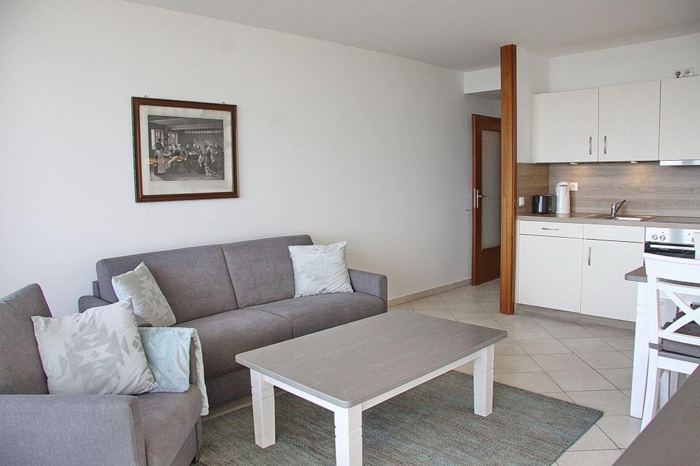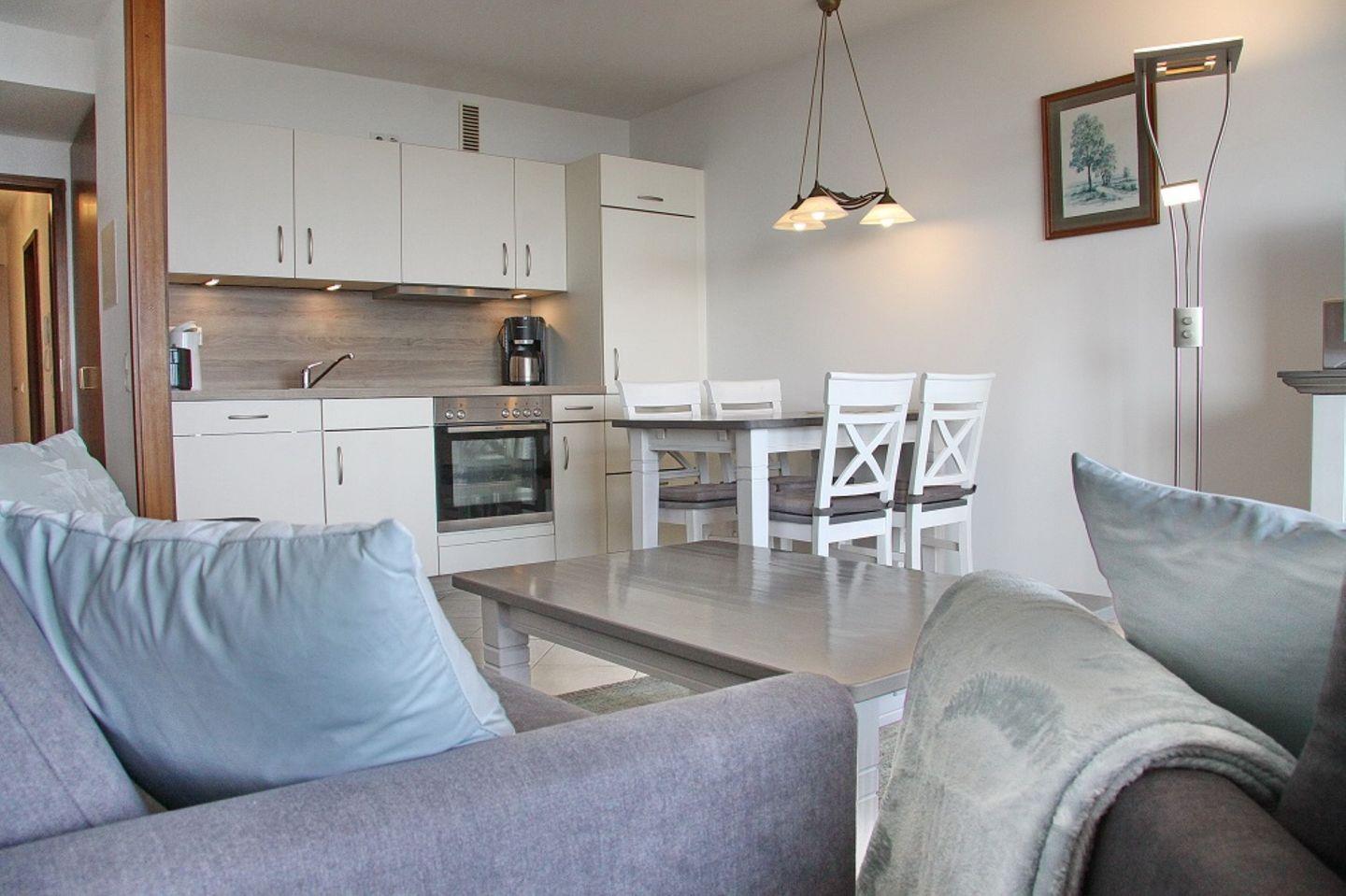 Sehr schöne 2 Zimmer Ferienwohnung möbliertem Süd-Balkon und Seeblick. Inkl. abschließbarer Garage direkt am Haus. Nur wenige Meter zum feinen Sandstrand.