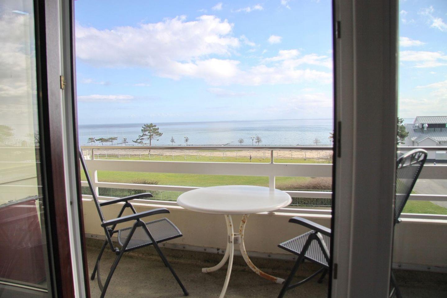 Auf Ihrem möblierten Süd-Balkon können Sie einen fantastischen Ostseeblick genießen, das Meer rauschen hören und die Gäste beim schlendern über die Promenade beobachten.