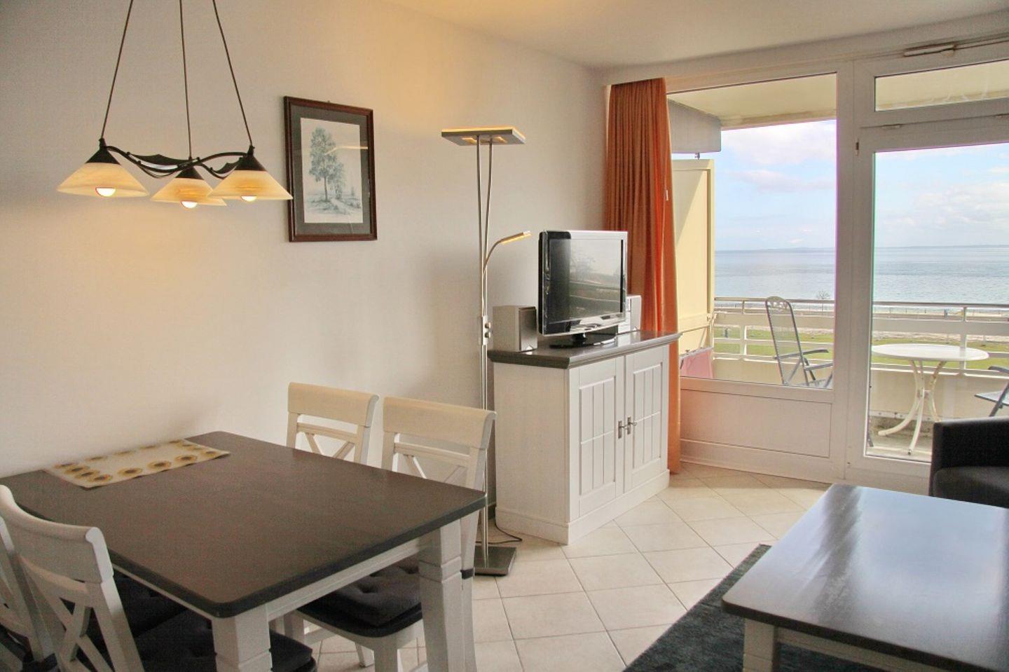Moderne 2-Zimmer-Ferienwohnung mit Süd-Balkon und herrlichem Seeblick in Grömitz, nur wenige Meter vom Sandstrand entfernt.