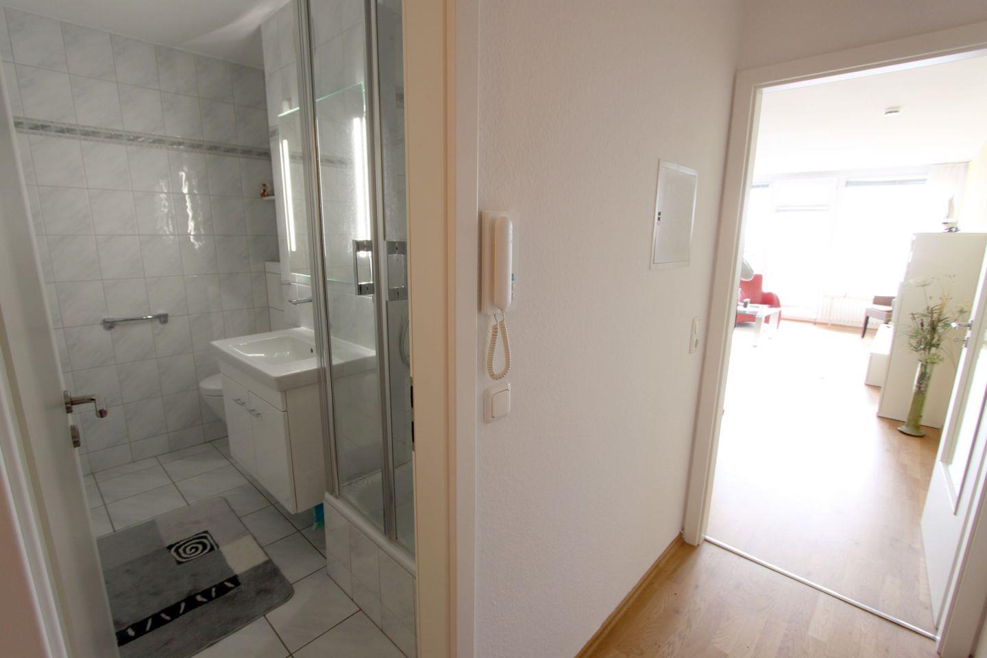 Sehr schöne 2-Zimmer-Wohnung in der 4. Etage mit möbliertem Balkon in Südrichtung mit Markise.