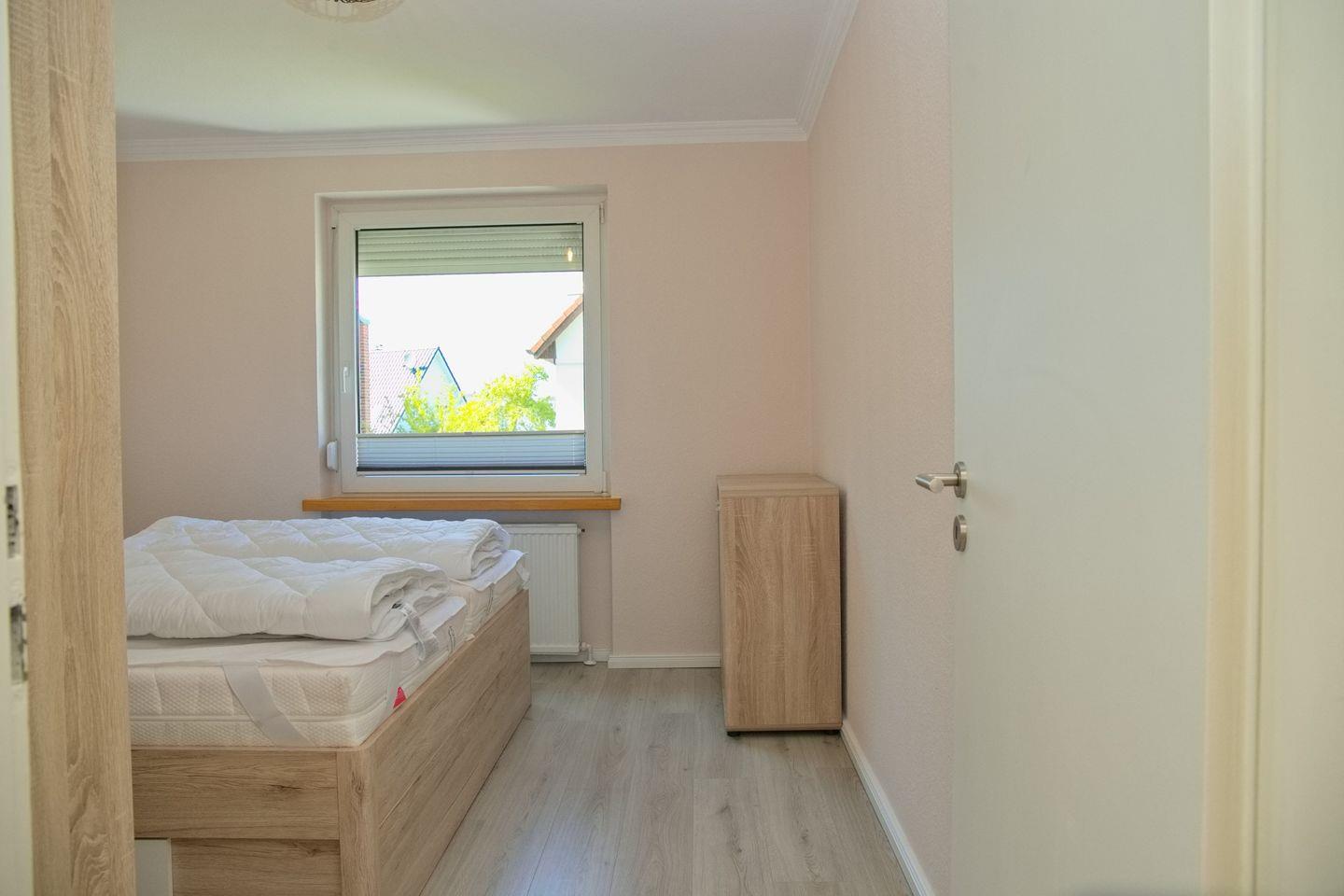 Im Schlafzimmer erwartet Sie ein komfortables Doppelbett mit einer Liegefläche von 2x 90x200 cm, perfekt für erholsame Nächte. Ein geräumiger Kleiderschrank und ein separater kleiner Schrank bietet ausreichend Platz für Ihre Kleidung und sogar ein Kinderbett findet hier Platz. Die Außenrollläden sorgen für eine angenehme Dunkelheit, damit Sie ungestört schlafen können.