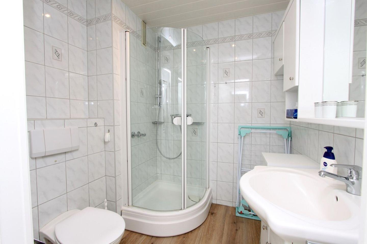 Das Duschbad mit WC und Waschbecken mit Spiegel befindet sich gleich links.