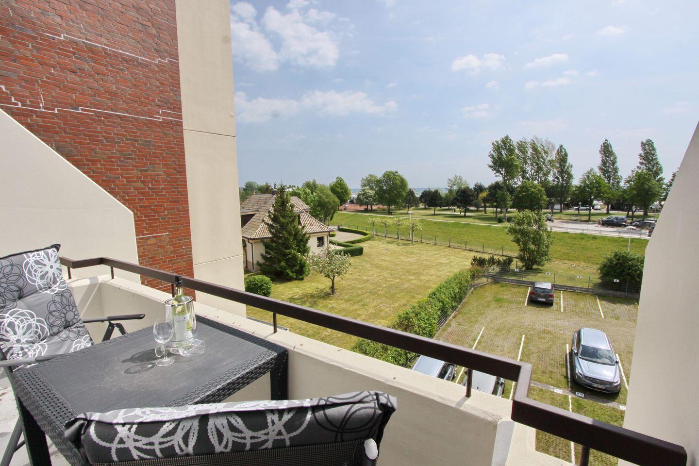 Vom Wohnbereich kommen Sie auf den möblierten Südbalkon mit Teilseeblick.