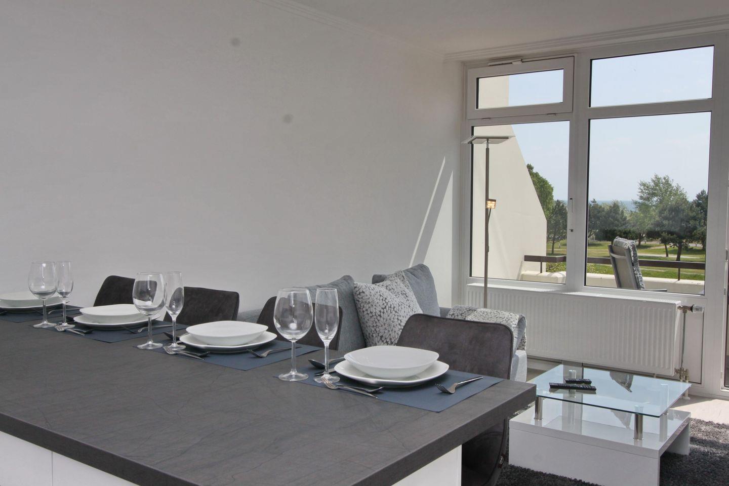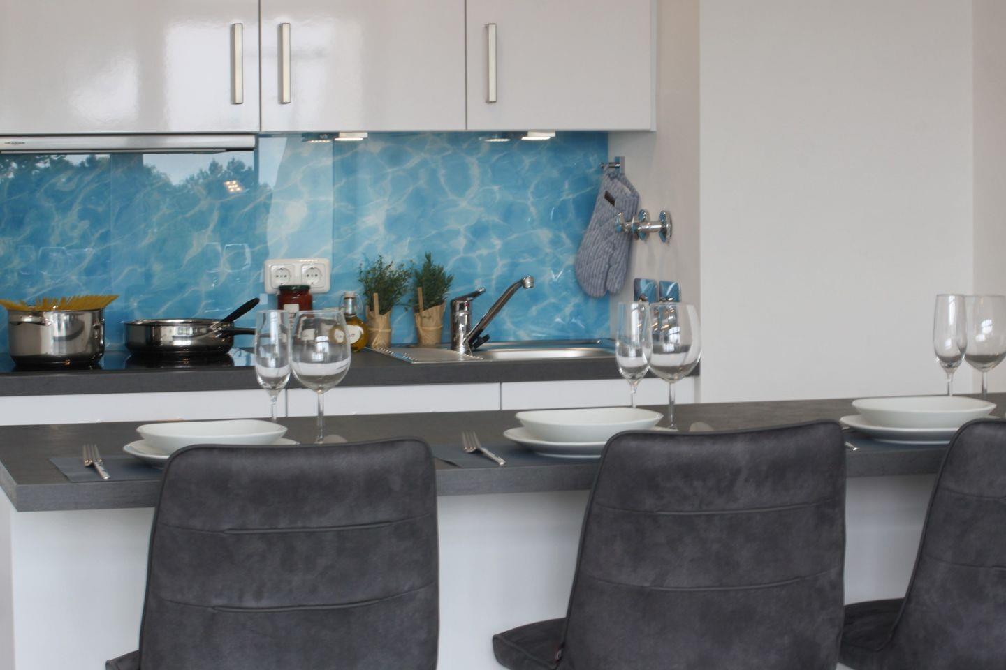 Neben einer voll ausgestatteten Küche mit Cerankochfeld, Backofen in Komforthöhe, Geschirrspüler, Kühlschrank mit Gefrierfach, Wasserkocher, Toaster und Senseo Padmaschine, finden Sie den gemütlichen Wohnbereich.