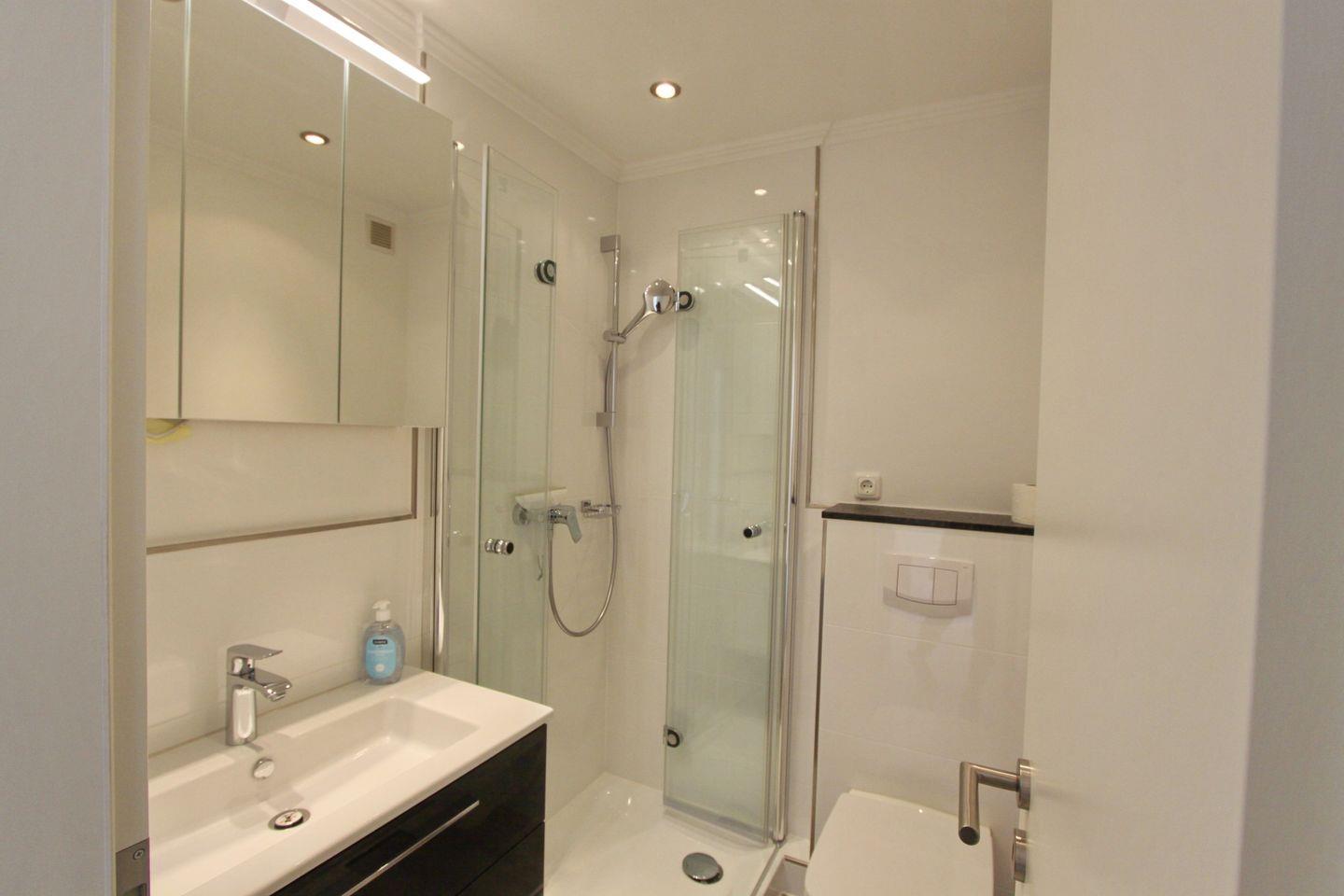 Das moderne Duschbad (inkl. Föhn) mit WC, Waschtisch und beleuchteten Spiegel komplettiert die Wohnung.