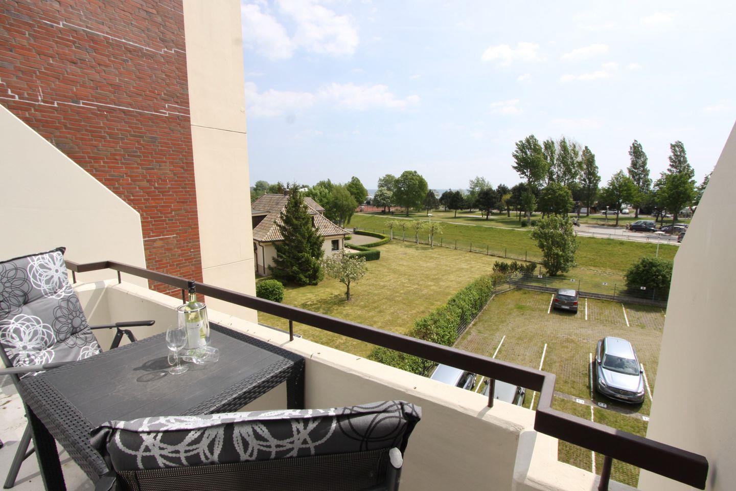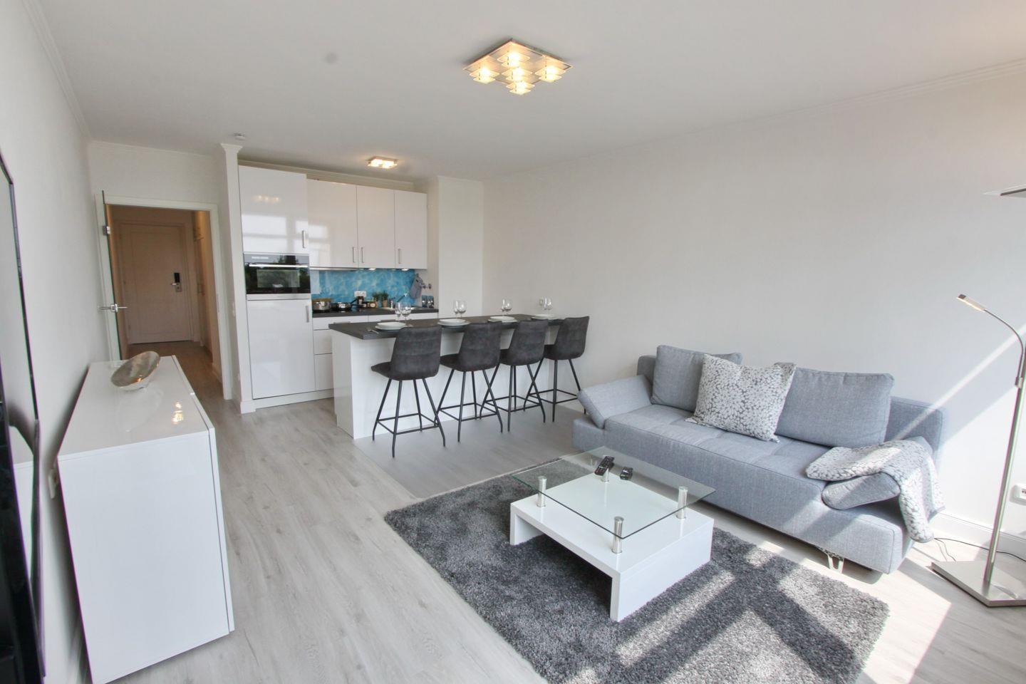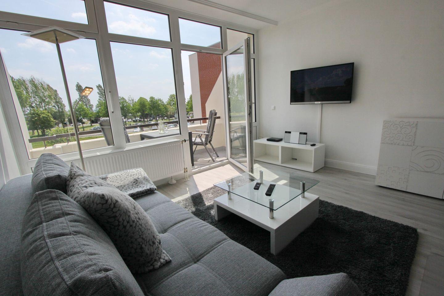 Moderne Ferienwohnung mit möblierten Balkon, direkt hinter dem Deich, nur ein Steinwurf vom Meer und dem Zentrum entfernt.