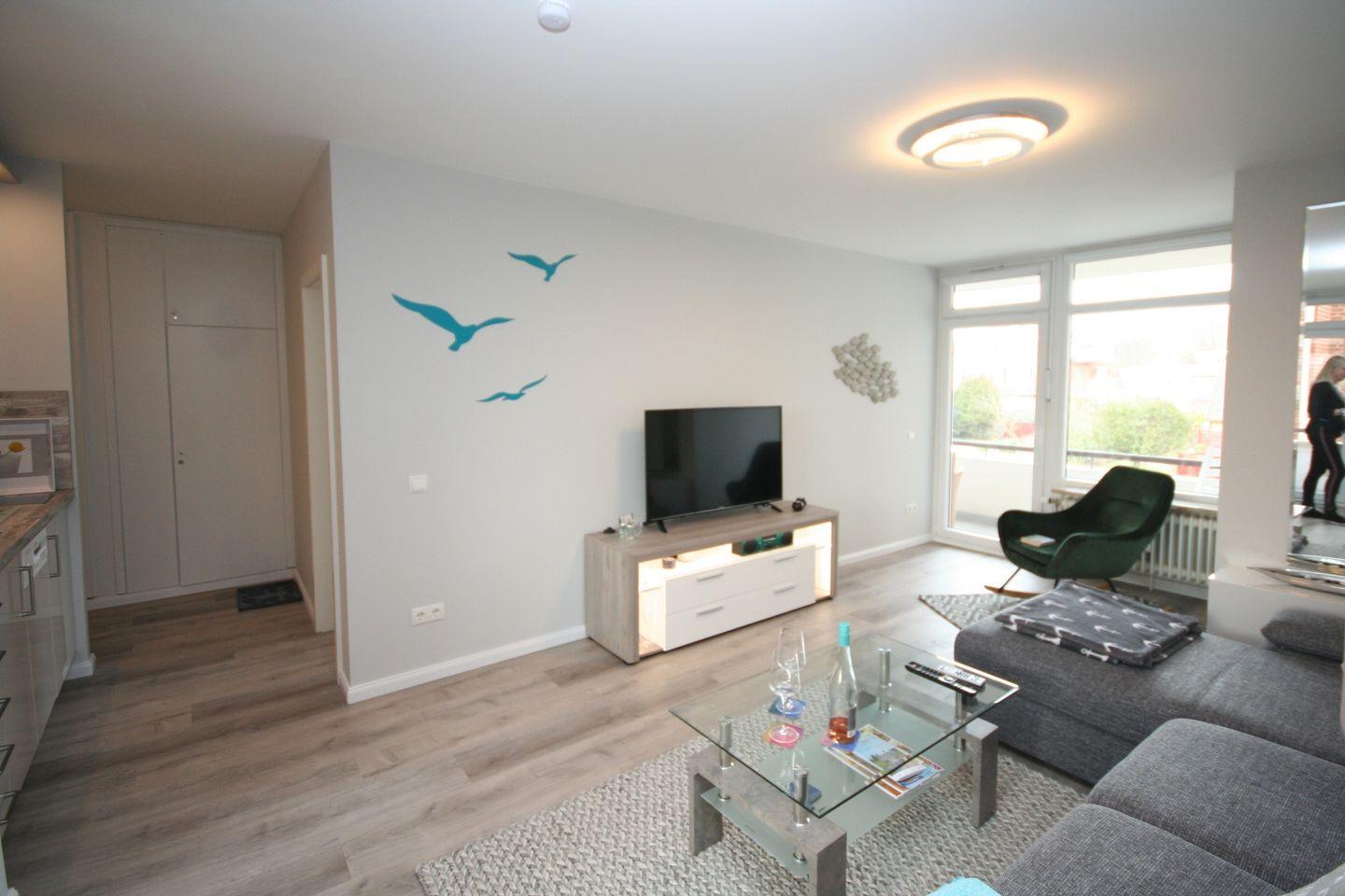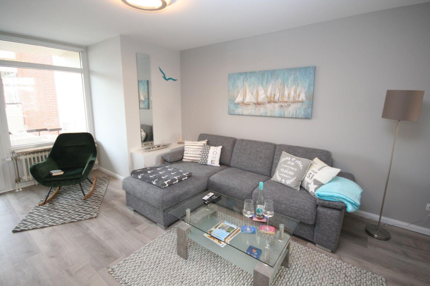 Helle Ferienwohnung mit Seeblick, zwei Balkonen und zentraler Lage direkt hinter dem Deich in Grömitz.