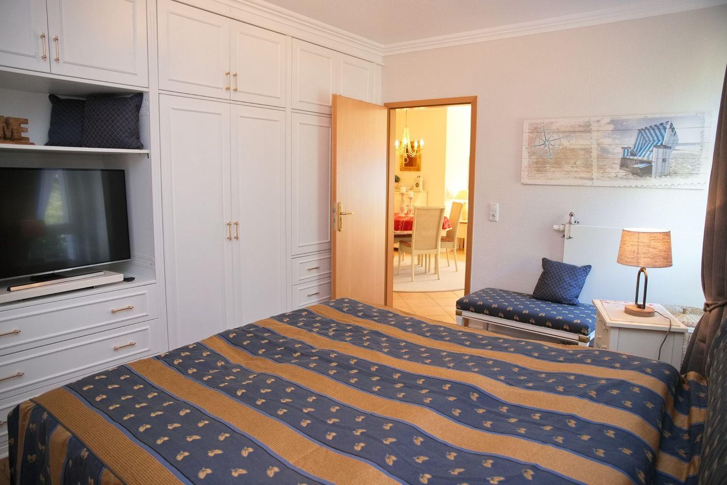 Ein Doppelbett (2x90x200cm), Flach- TV und einen großen Kleiderschrank erwartet Sie im Schlafzimmer.