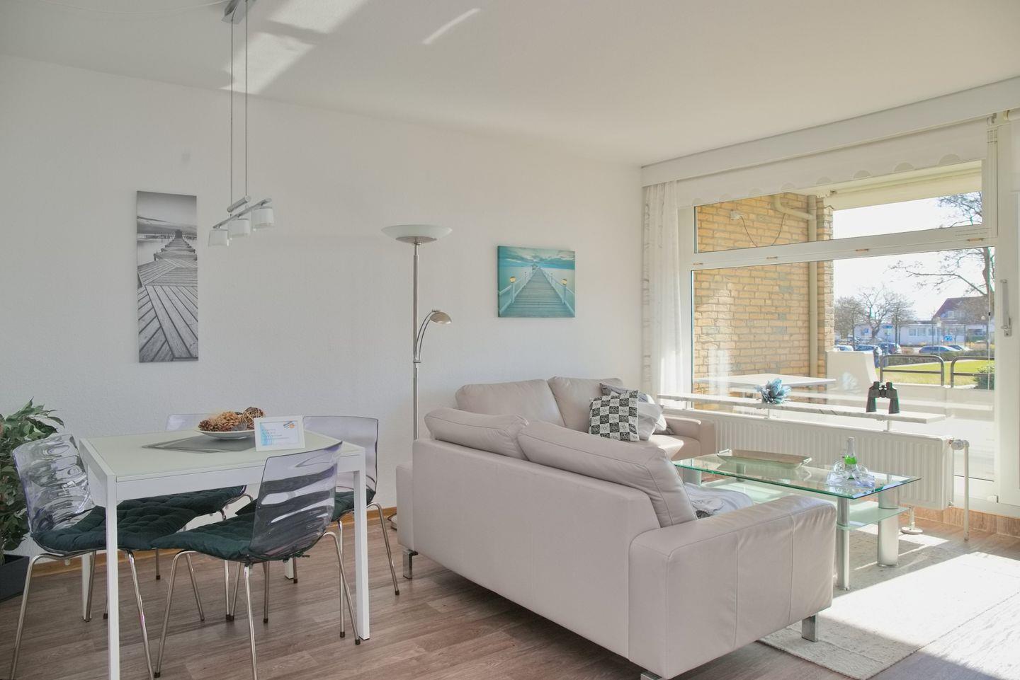 Der Essbereich findet im Wohnzimmer seinen Platz, sodass Sie auch an regnerischen Tagen ein ausgiebiges Frühstück mit Ostseeblick genießen können.