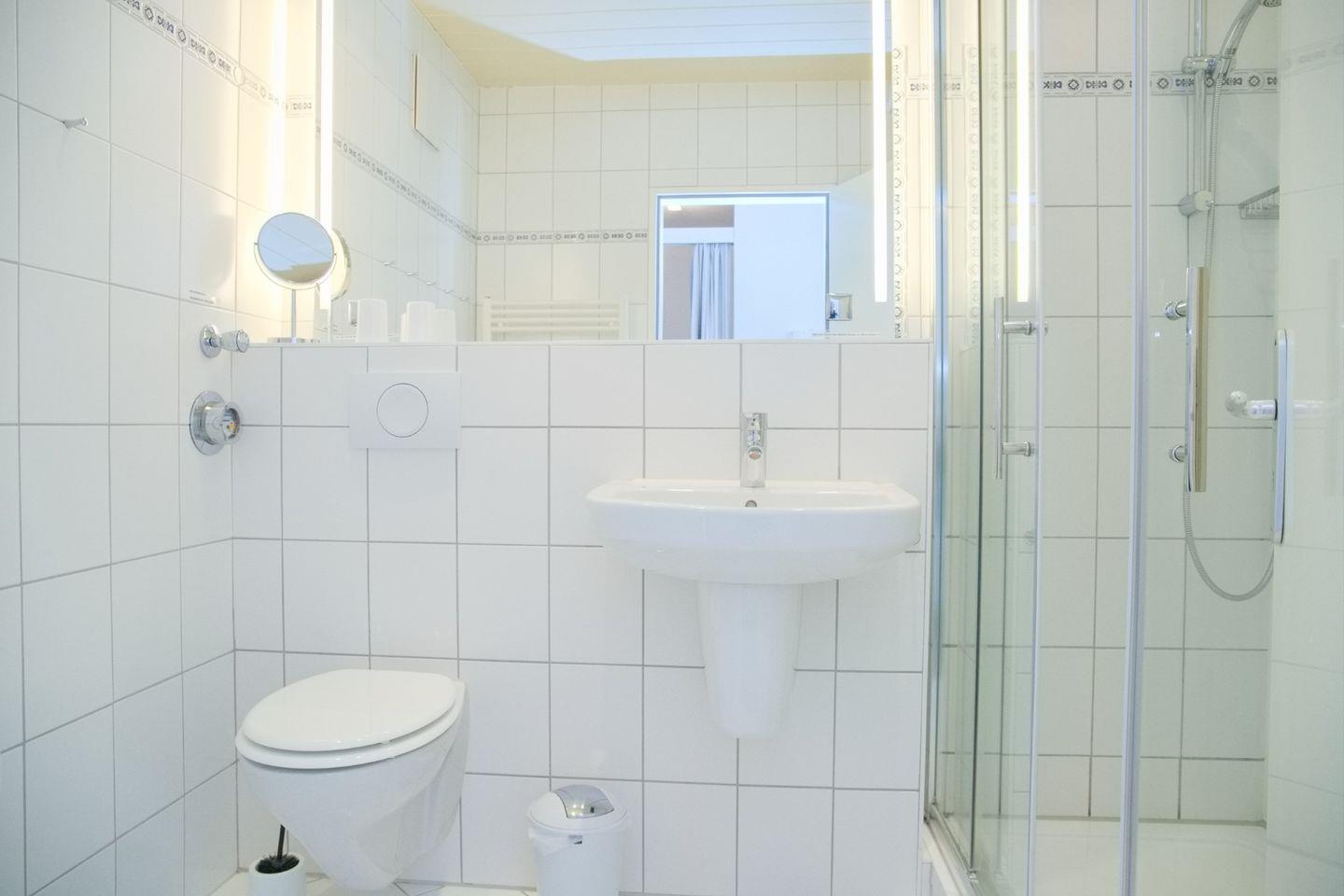 Das helle Bad mit Dusche, WC, Waschbecken, Badschrank und großem Spiegel mit Kosmetikspiegel komplettiert diese traumhafte Wohnung.