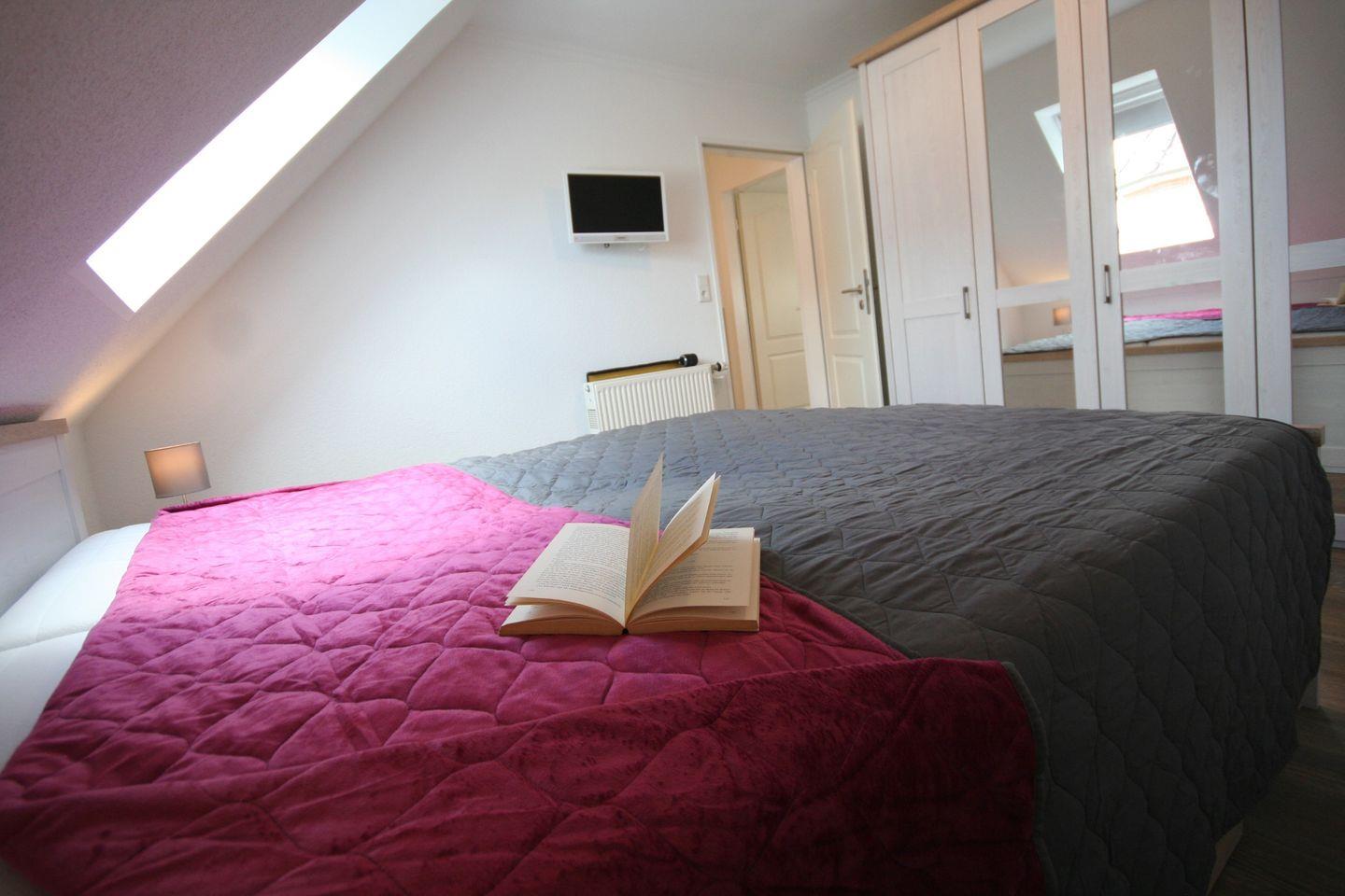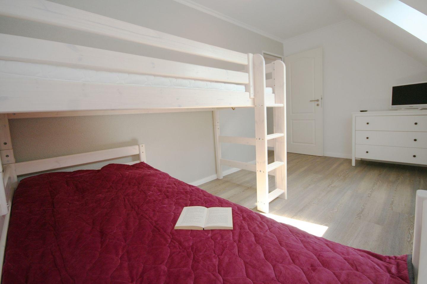 Das 1. Schlafzimmer bietet ein Doppelbett (2x90x200cm), Kleiderschrank, Flach TV und Verdunklungsmöglichkeit. Das 2. Schlafzimmer ist ausgestattet mit einem Ecketagenbett, Kommode, Flach TV und Verdunklungsmöglichkeit.