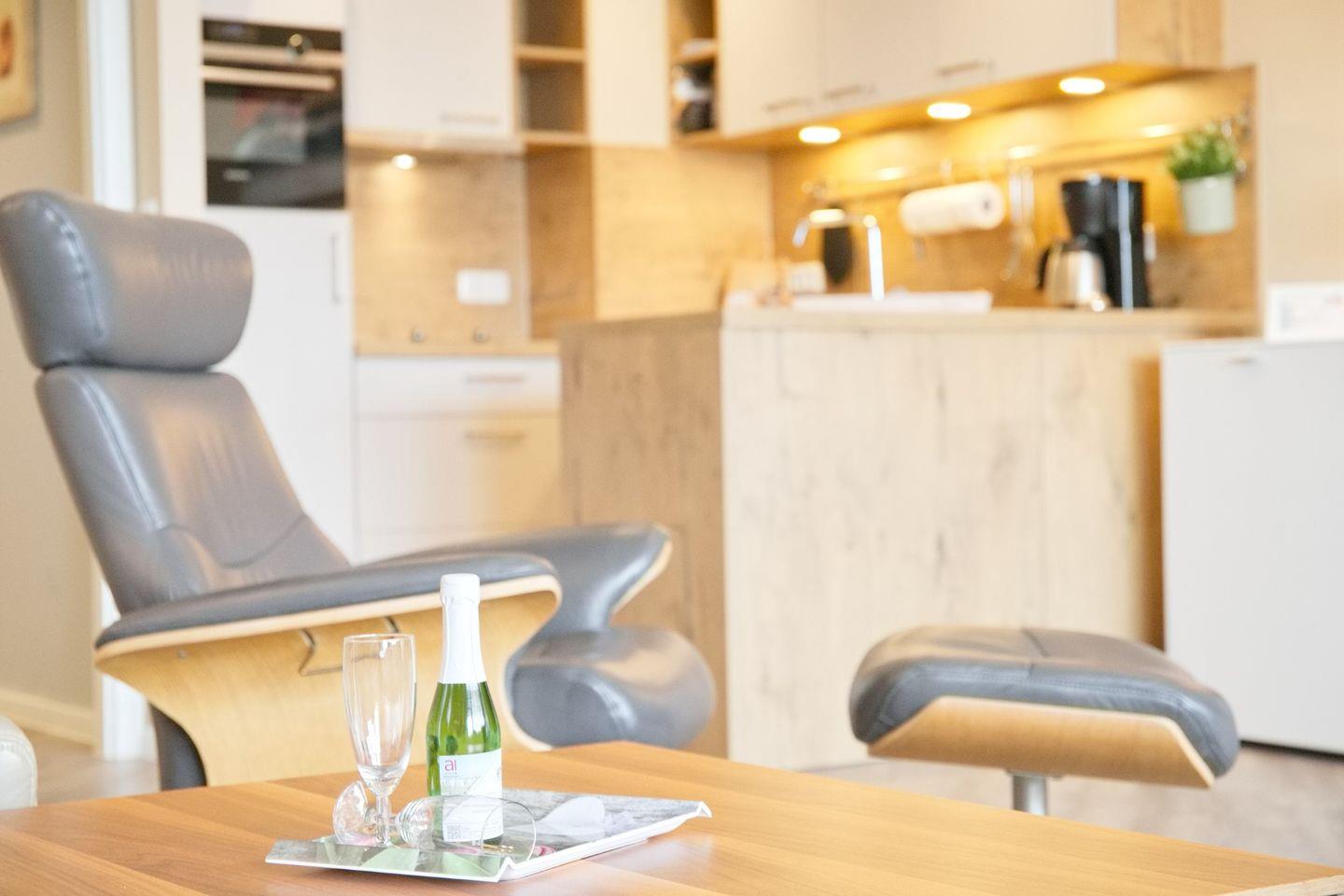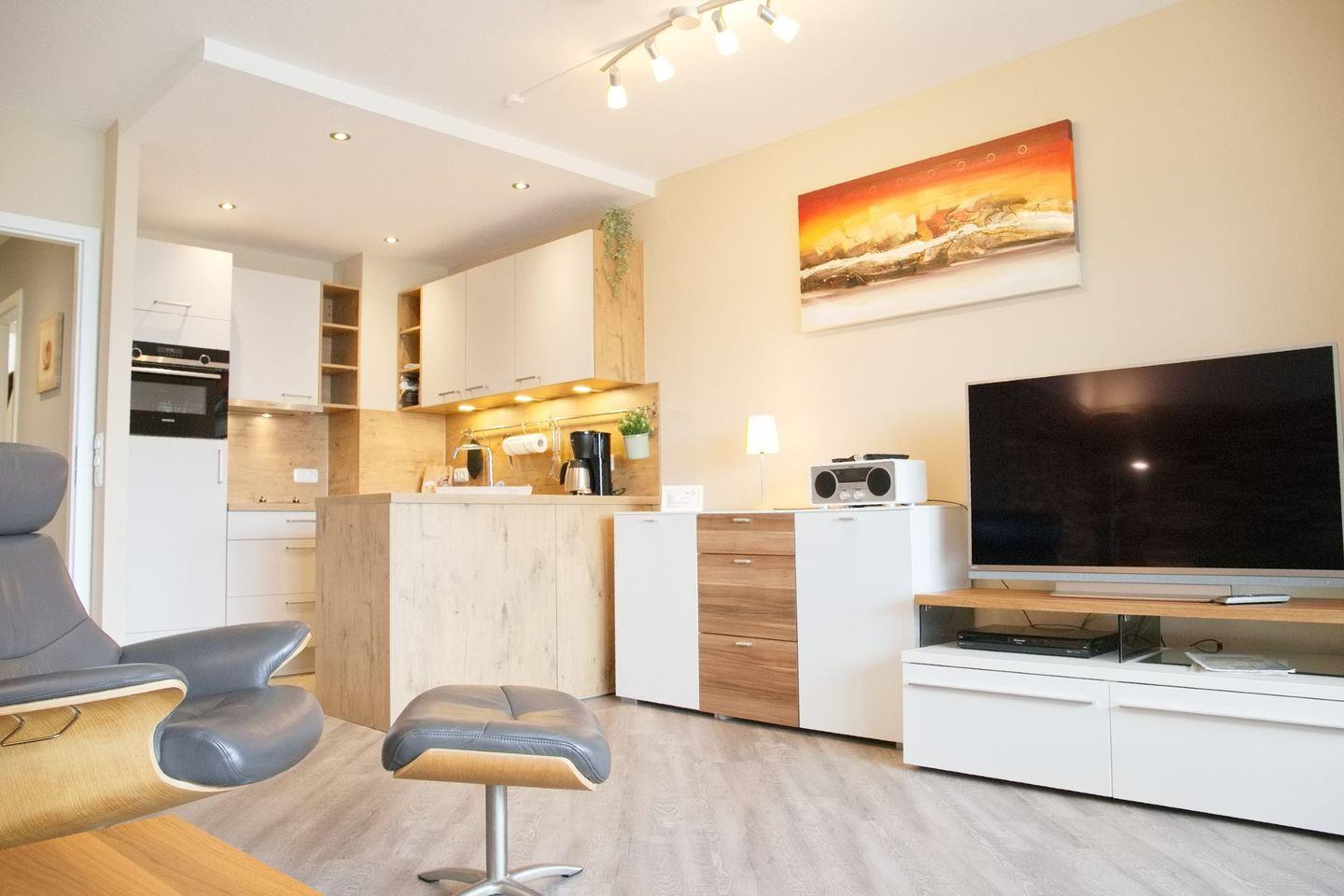 Bitte beachten Sie, dass kein Strandkorb zur Verfügung steht, jedoch können Sie die malerische Umgebung direkt von Ihrer Wohnung aus genießen.