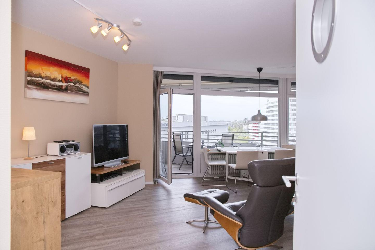 Sehr gepflegte, gemütliche Ferienwohnung mit möblierten Balkon und Teilseeblick. Nur wenige Meter vom Strand und der Promenade mit der Seebrücke entfernt.