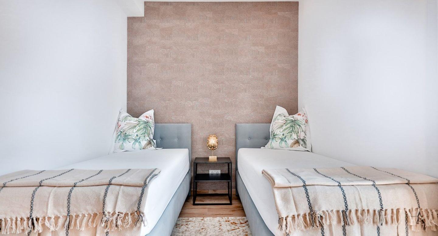 Außerdem erwarten Sie zwei Schlafzimmer mit Boxspringbetten sowie einen TV im Schlafzimmer.