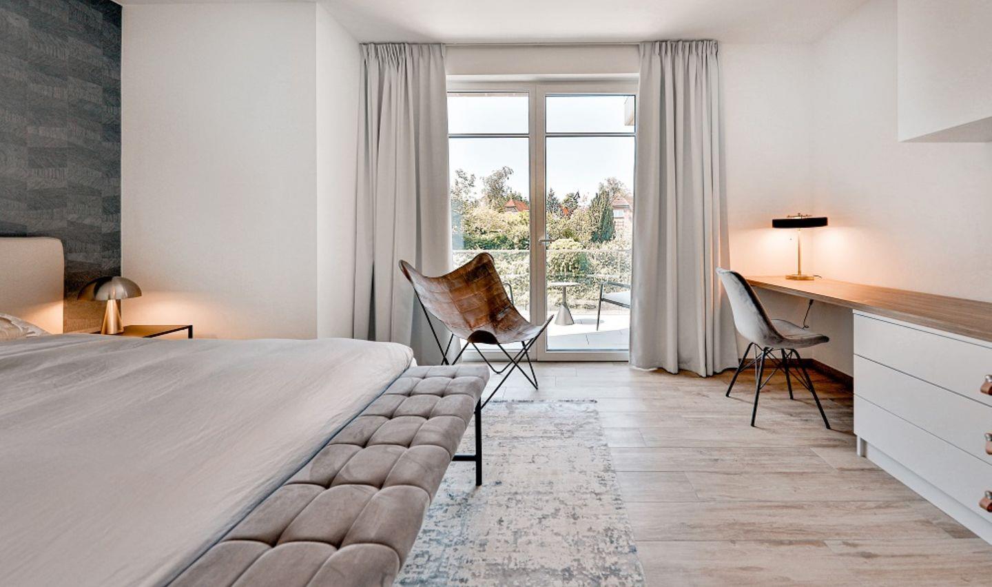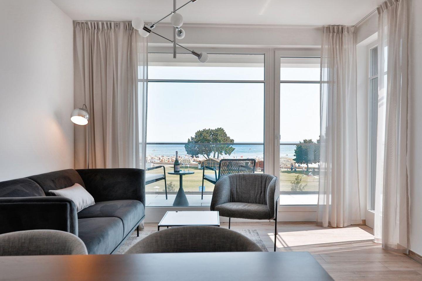 Elegante Ferienwohnung „Ocean View“ direkt am Sandstrand von Grömitz mit traumhaftem Meerblick und zwei Balkonen.