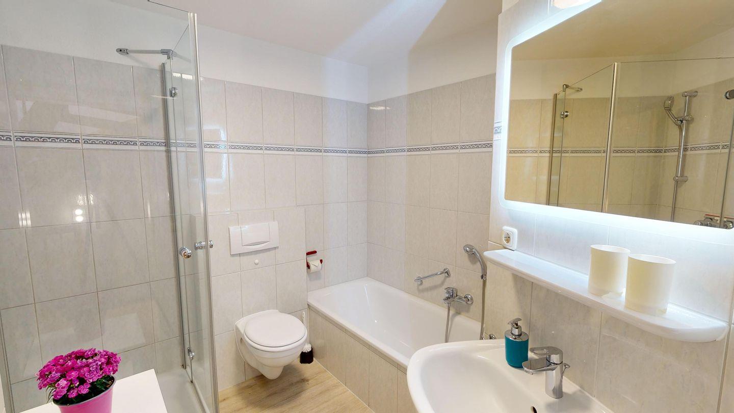 Das Haus verfügt über drei separate Schlafzimmer mit Doppelbetten, zwei Duschbäder, ein separates Gäste-WC sowie eine moderne, gut ausgestattete Küche. Im hellen Wohnzimmer mit bequemer Couchgarnitur können Sie entspannte Stunden verbringen für zusätzlichen Komfort sorgt der 65-Zoll Smart-TV inklusive MagentaTV, Netflix und Disney+ . Alle Räume sind mit Außenjalousien ausgestattet, und es gibt einen Waschtrockner.