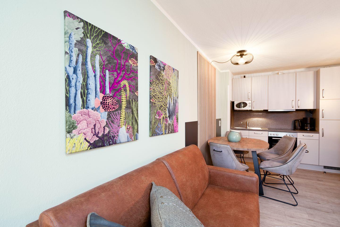 Strandnahe 43 m² große Ferienwohnung im Erdgeschoss bietet Platz für eine Belegung mit bis zu 4 Personen.