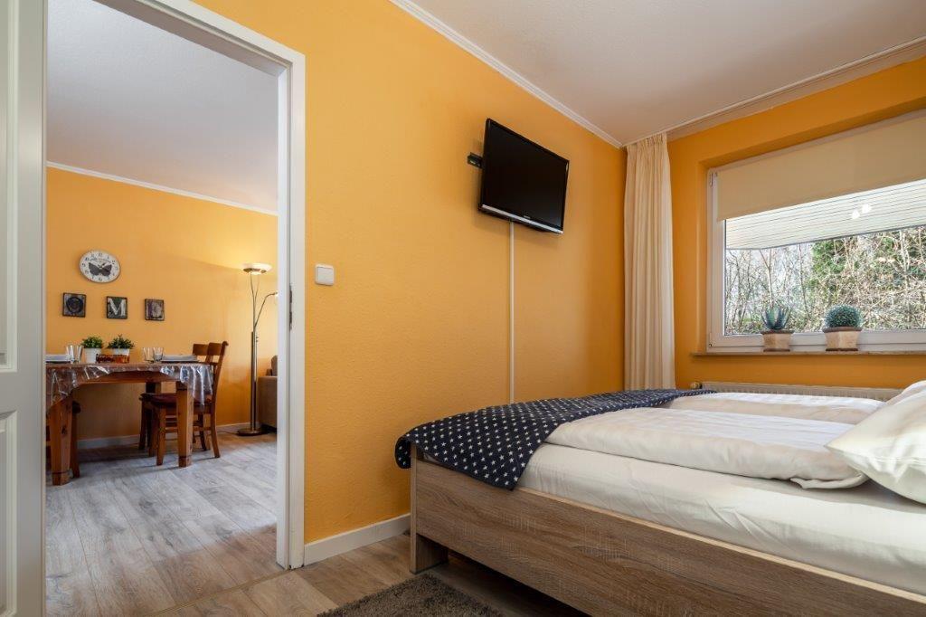 Zwei TV-Flachbildschirme stehen Ihnen in dieser wunderschönen Wohnung zur Verfügung. Das Schlafzimmer mit seinem Doppelbett (2x90cm x200cm) und ein großer, geräumiger Kleiderschrank runden das Bild ab.