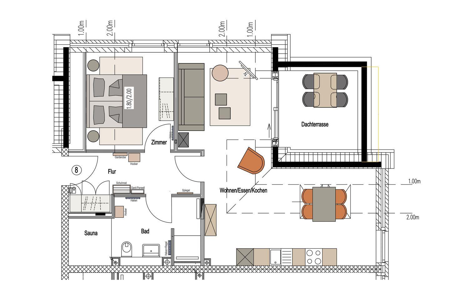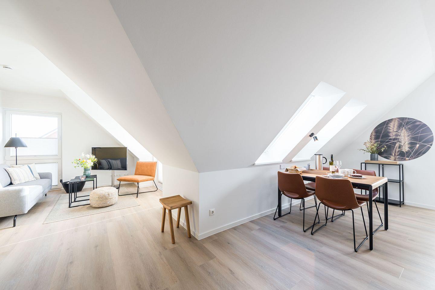 Die 56 m² große Dachgeschoss-Wohnung Peter´s Lodge ? 8 steht nach der Fertigstellung erstmals zur Vermietung zur Verfügung. Die moderne Wohnung ist nur wenige Meter vom Strand und der Ostsee entfernt (100 m Luftlinie).
