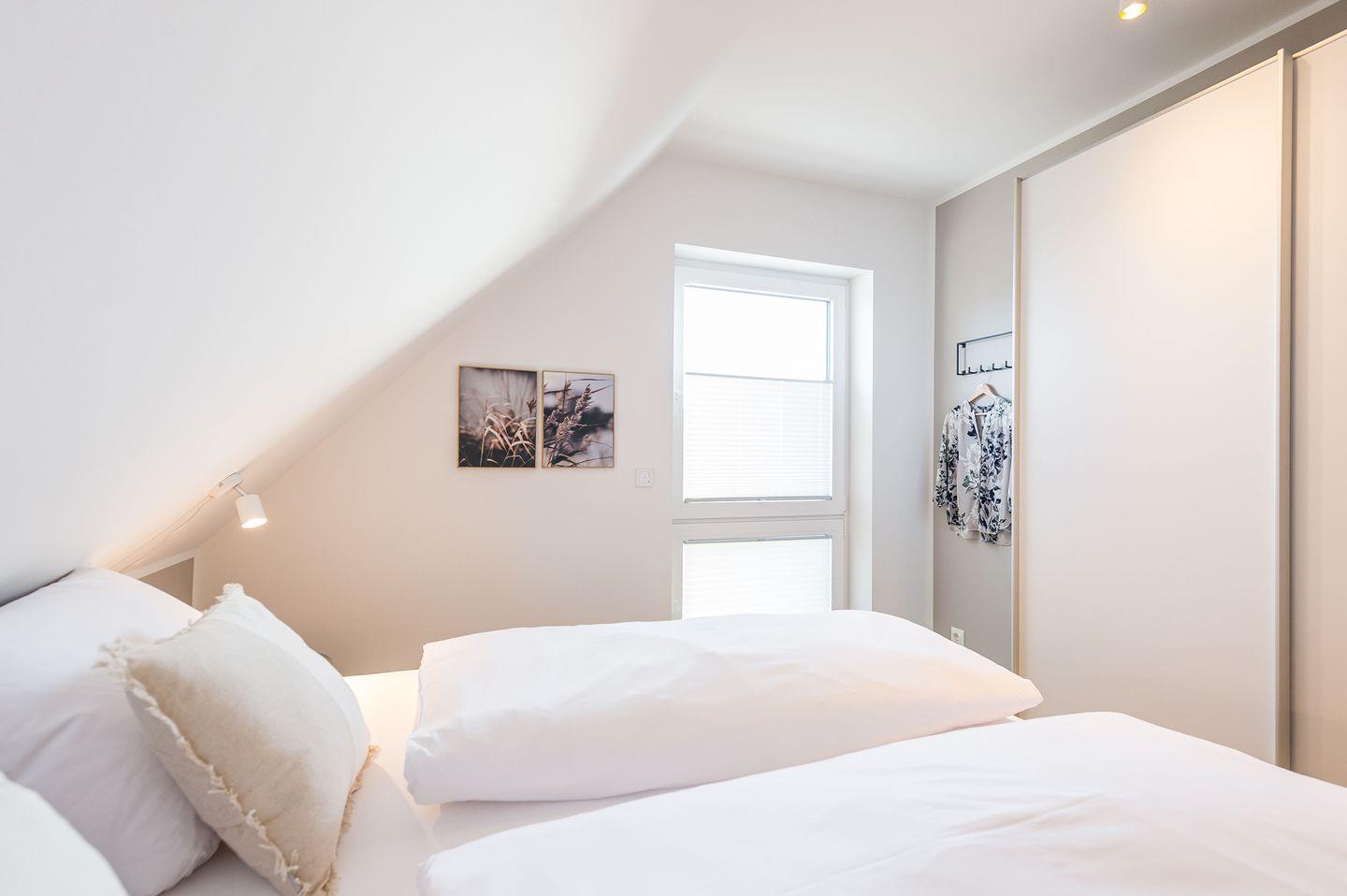Sie ist für bis zu 2 Personen buchbar (1 Schlafzimmer mit Doppelbett 180 x 200 cm) und verfügt über eine gehobene 5-Sterne-Ausstattung: 1 Badezimmer, 1 Sauna sowie 1 Dachterrasse (frontaler Meerblick). Die Küche ist komplett ausgestattet und bietet zudem einen Esstisch für bis zu 4 Personen. Zudem gibt es einen Geschirrspüler, einen Kühlschrank inkl. Gefrierfach, eine Mikrowelle sowie einen Waschtrockner. Im Wohnbereich erwartet Sie ein 50-Zoll-Smart-TV sowie der Zugang zur Dachterrasse. Die Dachterrasse ist ebenfalls mit einem Esstisch ausgestattet und bietet einen herrlichen, frontalen Blick auf die Ostsee. Selbstverständlich bieten wir schnelles und kostenfreies WLAN sowie einen PKW-Stellplatz direkt am Haus. Auf den hauseigenen Parkplätzen stehen Ihnen E-Auto-Ladegeräte (Wallboxen) zur Verfügung (gegen Gebühr). Aufgrund der Allergiker gerechten Ausstattung sind Haustiere nicht erlaubt.