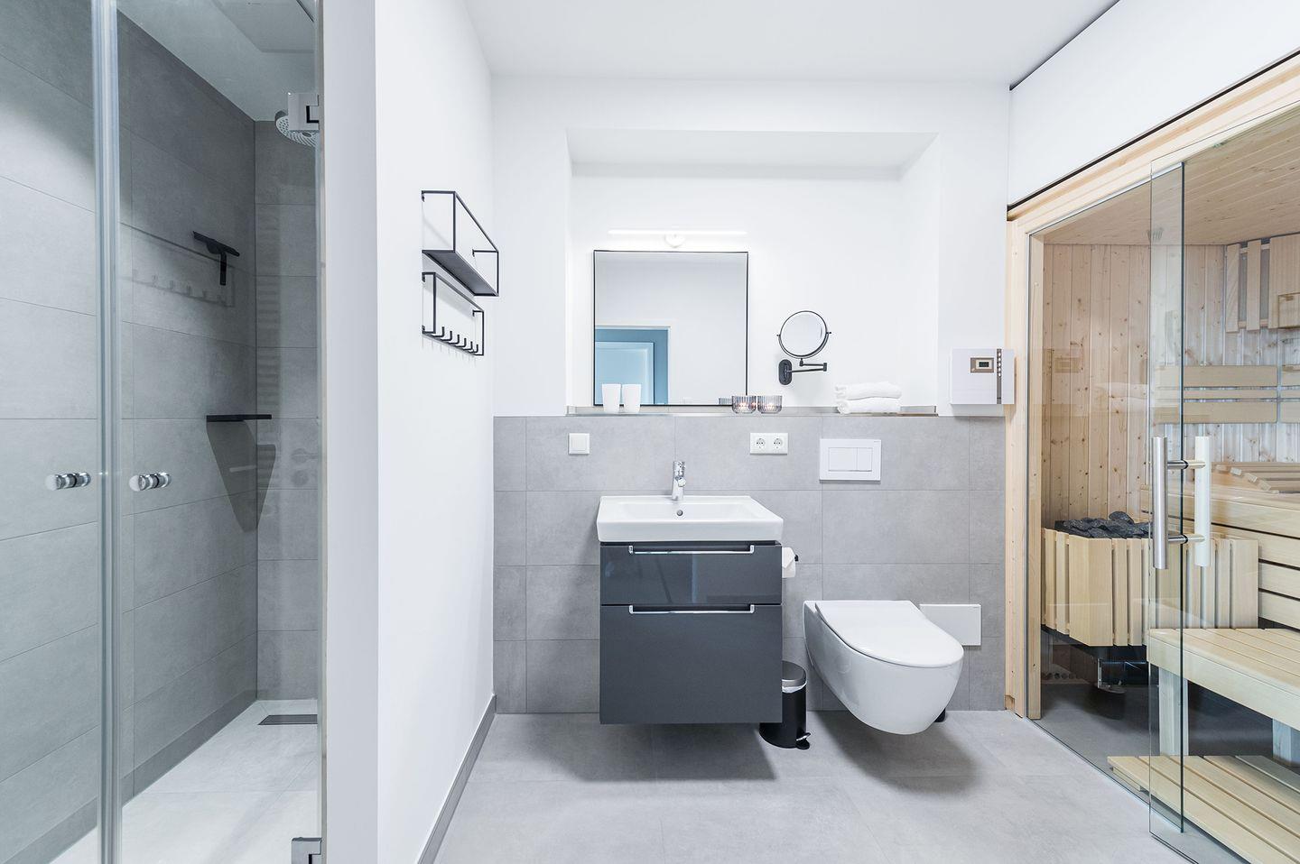 Moderne Luxusferienwohnung mit Meerblick, Sauna und Terrasse in Grömitz, nur 100 m vom Strand entfernt.