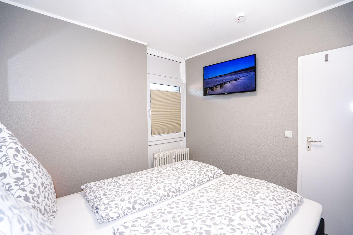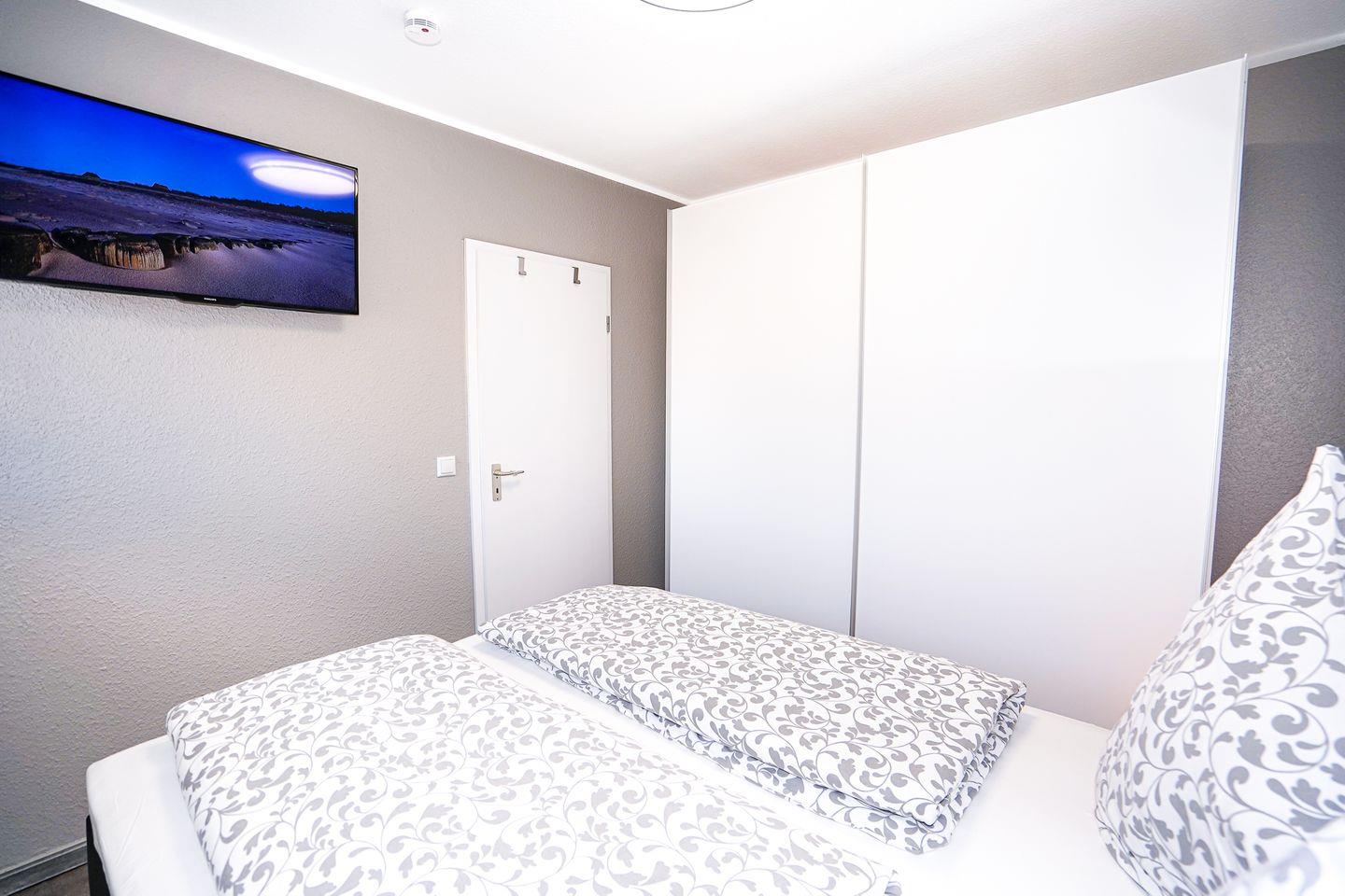 Das Schlafzimmer ist mit einem Boxspringbett 2x 80 x 200, Kleiderschrank und Flachbildfernseher (48 Zoll) ausgestattet.