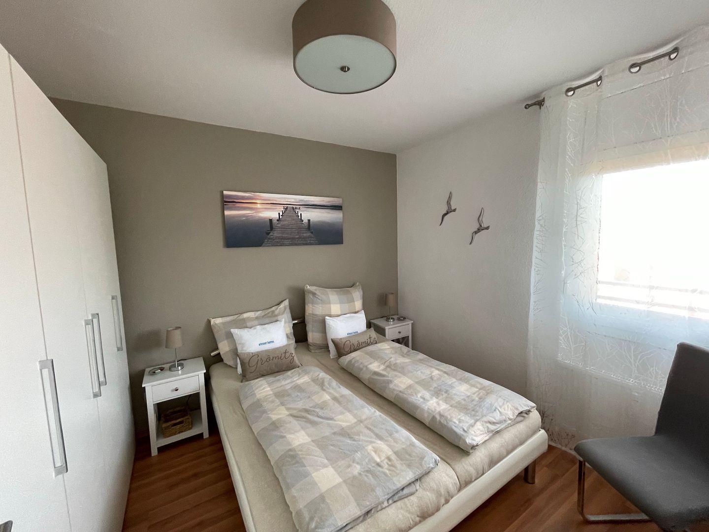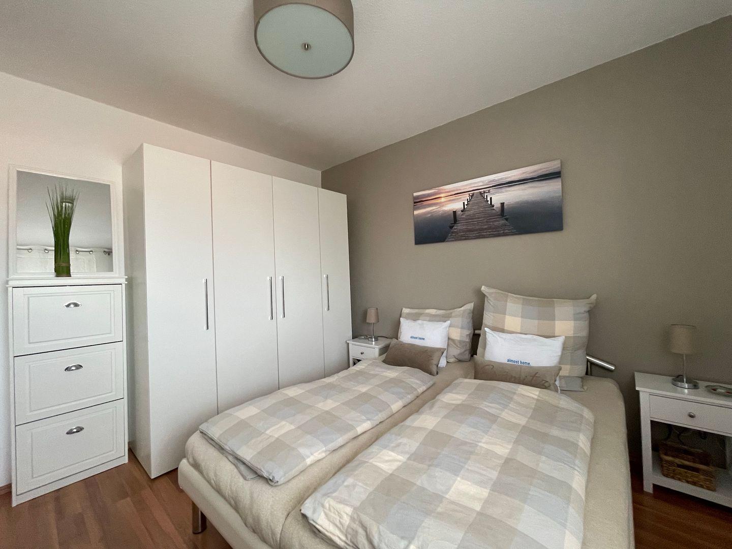 Die Wohnung verfügt über ein separates gemütliches Schlafzimmer mit Doppelbett (2x90x190cm) und Kleiderschrank. Ein Verdunkelungsmöglichkeit besteht.