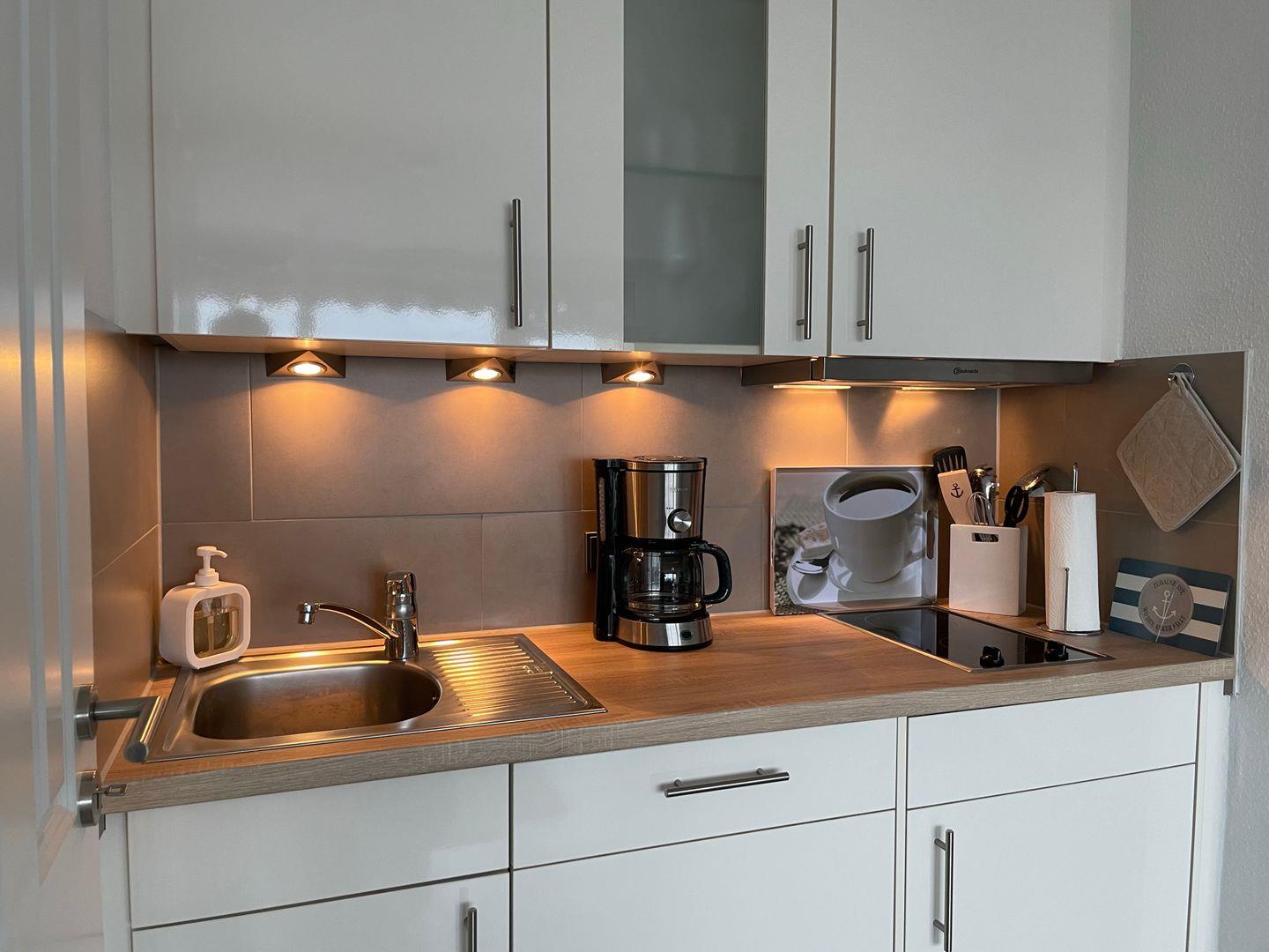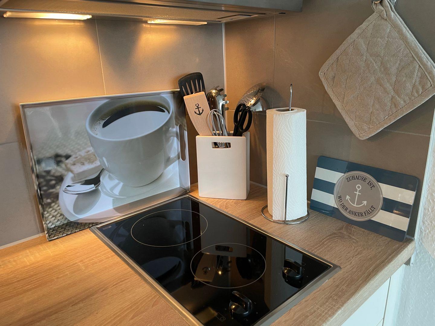 Die Küche ist mit allem ausgestattet, was Sie für Ihren entspannten Urlaub benötigen. Es gibt neben der Spülmaschine auch einen kleinen Mini-Backofen für Pizza oder Brötchen.