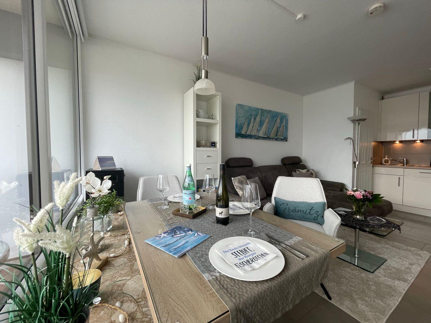 Helles 2-Zimmer-Apartment mit Teilmeerblick, Balkon und WLAN in Grömitz, nur 200 m vom Strand entfernt.