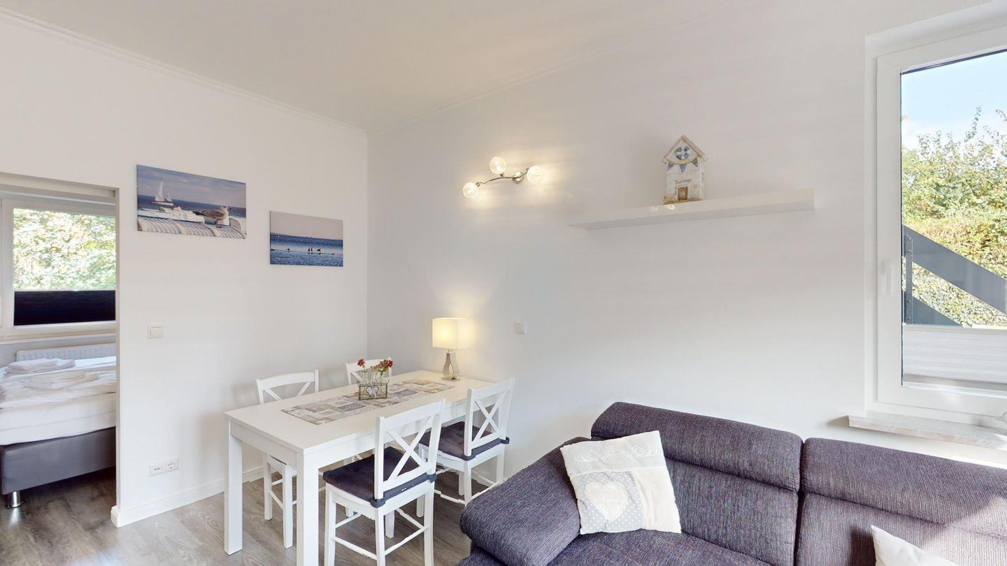 Strandnahe Ferienwohnung "Welle" in Grömitz mit Terrasse, Sauna und komfortabler Ausstattung für erholsame Tage am Meer.