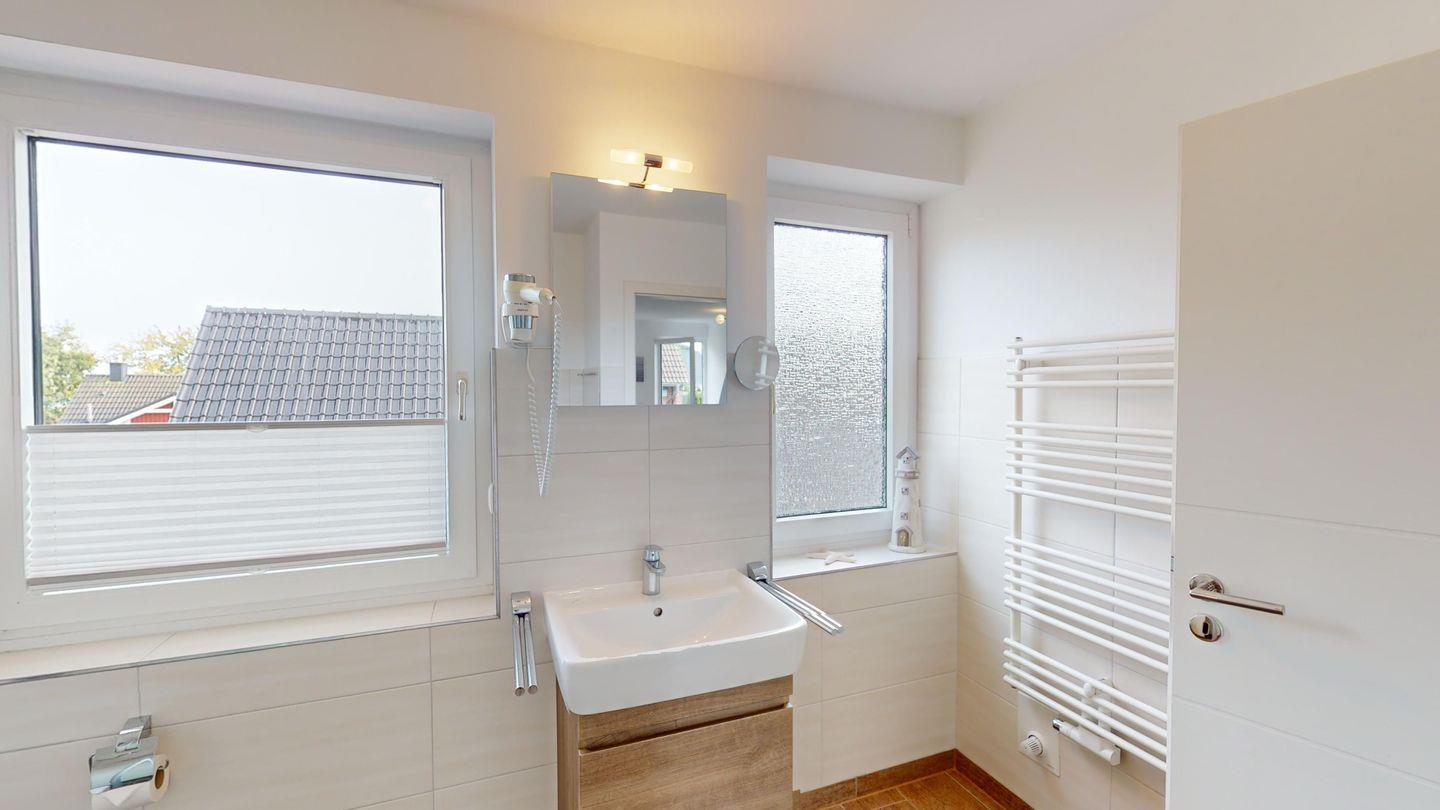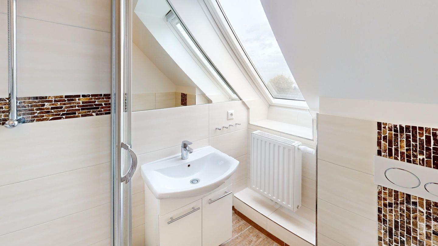 Im Dachgeschoss befindet sich ein zweites Duschbad.
