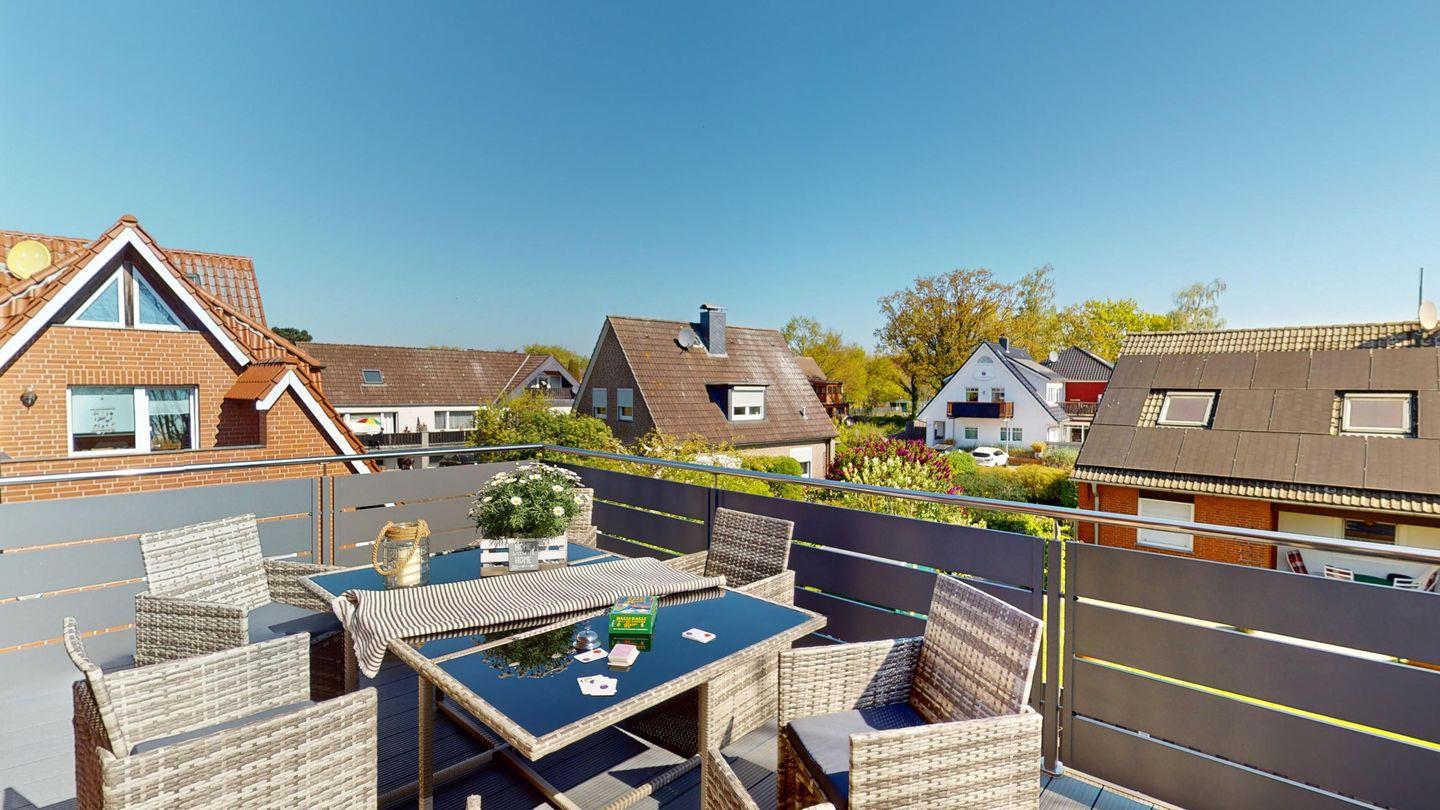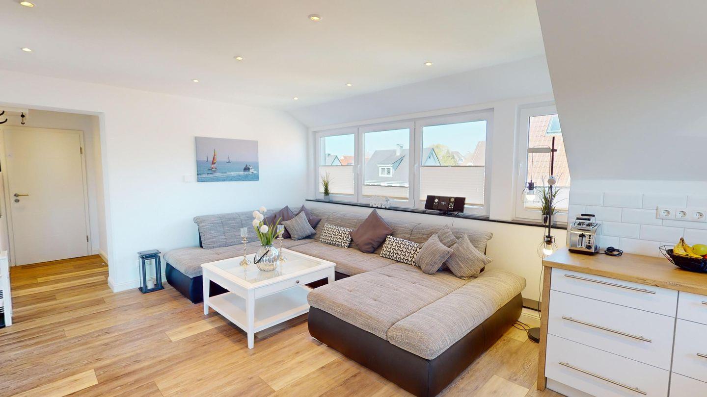 Luxus-Ferienwohnung Muschel in Grömitz mit moderner Ausstattung und sonniger Terrasse, nur 350 m vom Strand entfernt.