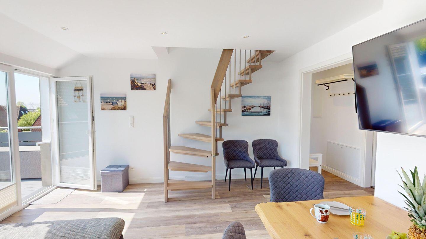 Die herrliche Luxus-Ferienwohnung "Krabbe" hat zwei Ebenen (1. Obergeschoss/Dachgeschoss) und liegt in der Villa Klarsinni II in Grömitz.