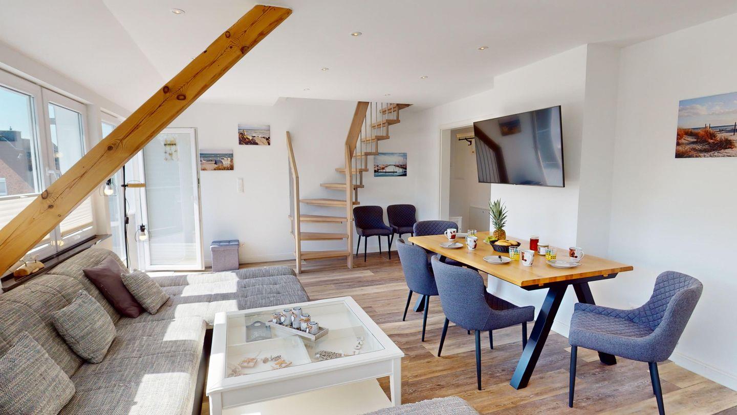 Sie liegt parallel zur Wohnung "Muschel" und es bietet sich an, bei mehr als sechs Personen beide Wohnungen zu buchen.