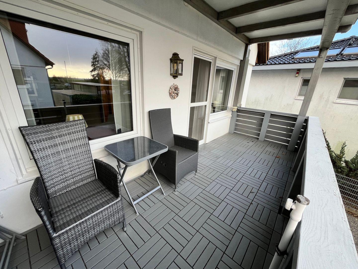 Modernes Appartement Sonnendeck in Grömitz mit überdachtem Balkon und Meerblick, nur 100 m vom Strand entfernt.