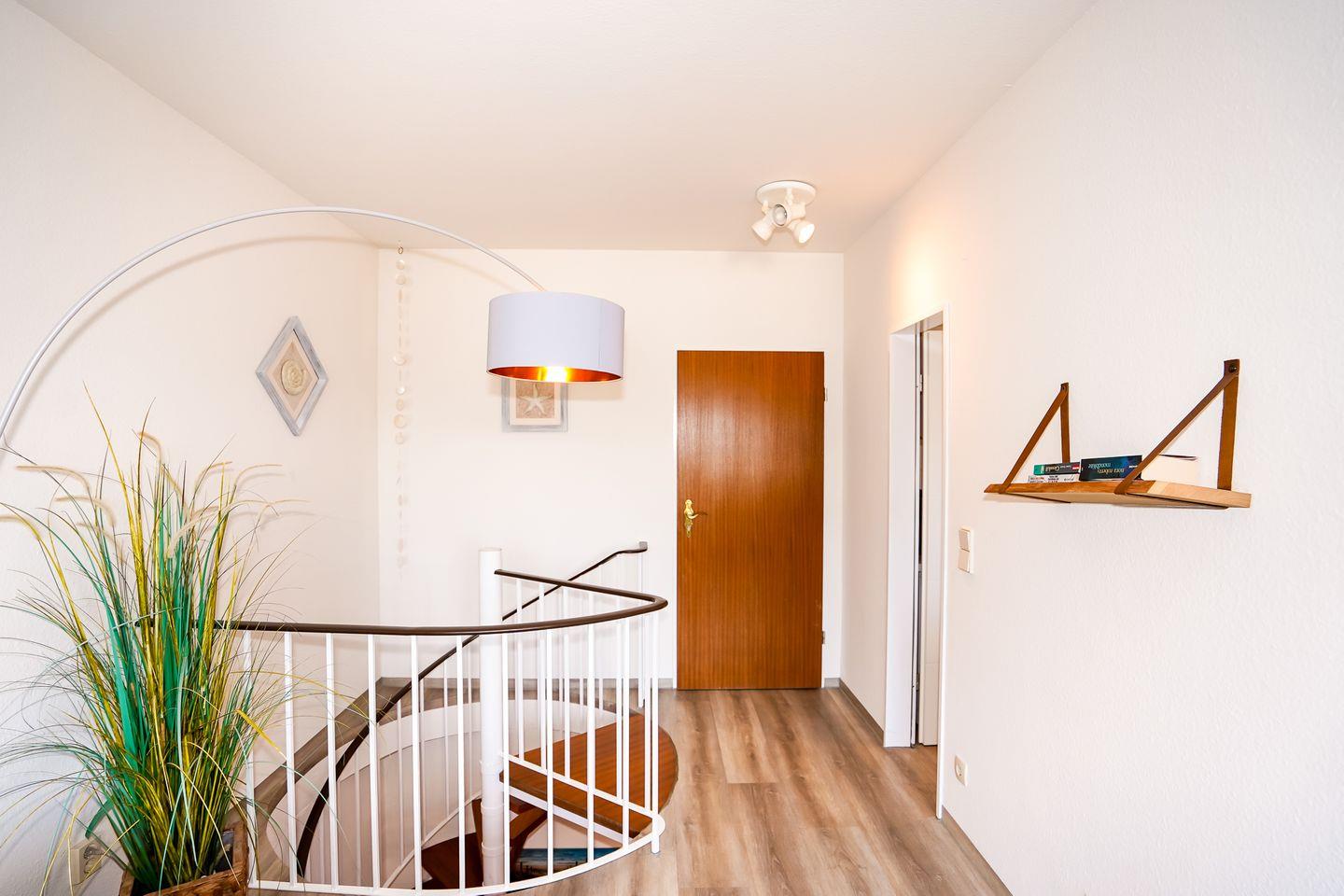 Über eine Wendeltreppe gelangen Sie vom Schlafzimmer mit eigener großen Terrasse in den Wohnbereich und zum Balkon.