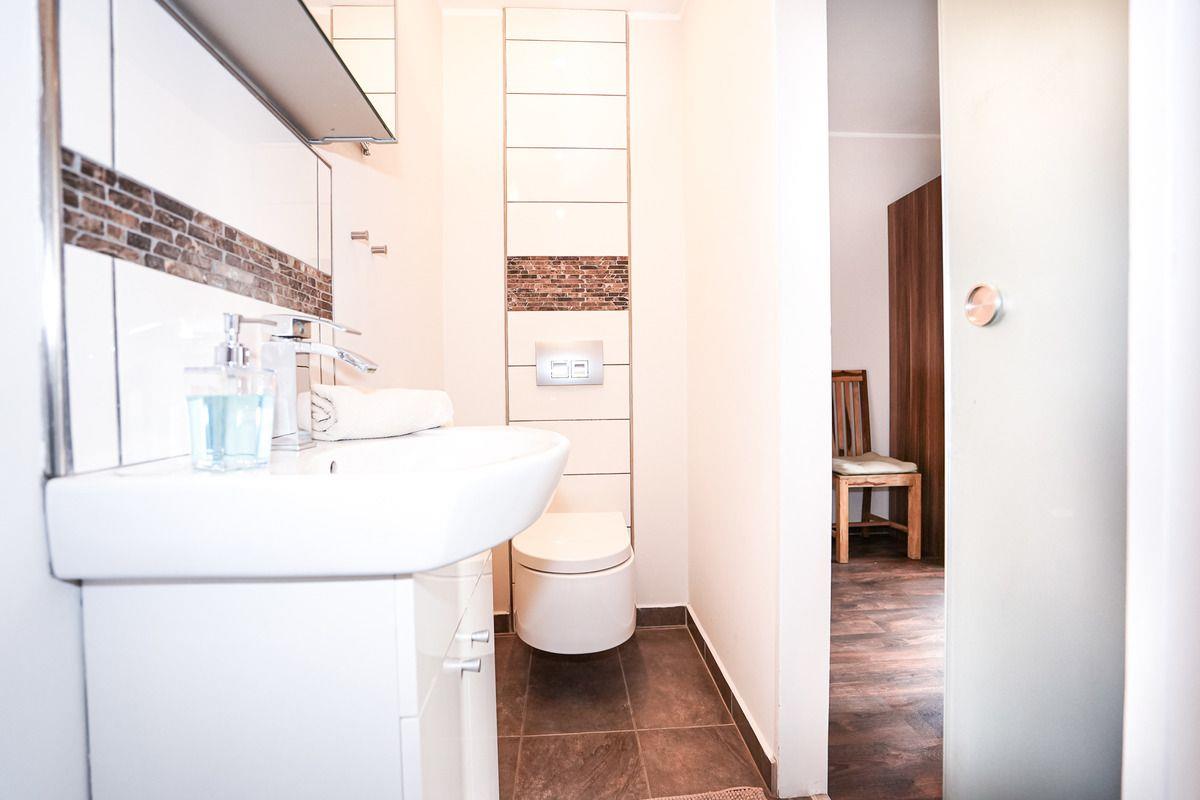 Zwei elegante Badezimmer sorgen für kurze "Wartezeiten" am Morgen.