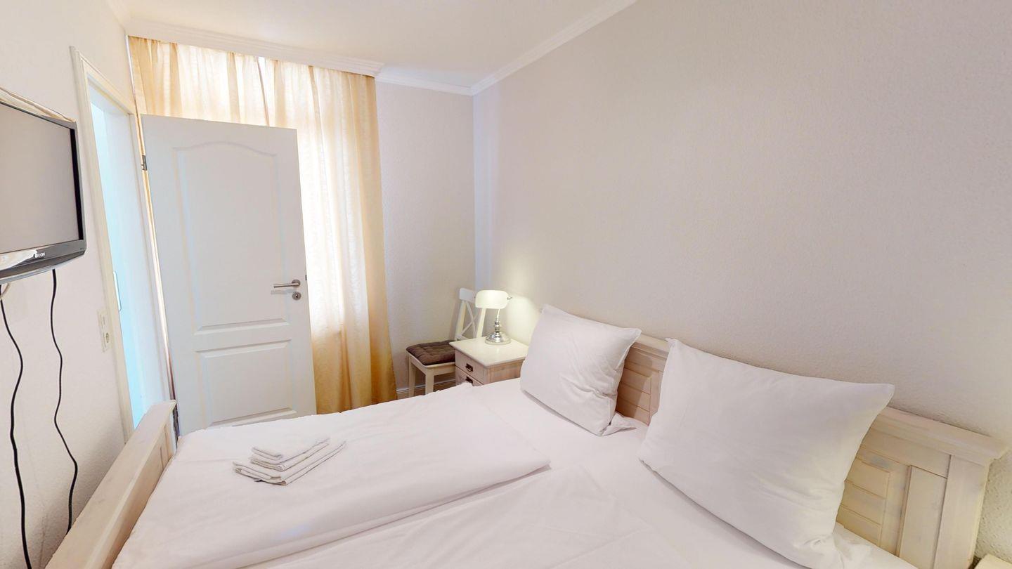 Bitte beachten Sie, dass es keine Außenrollläden gibt, sondern nur Gardinen als Sichtschutz, die nicht komplett abdunkeln.