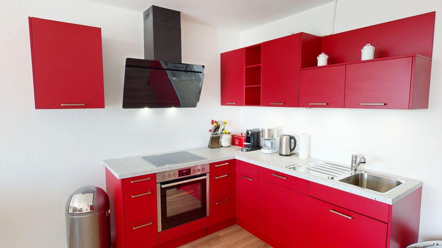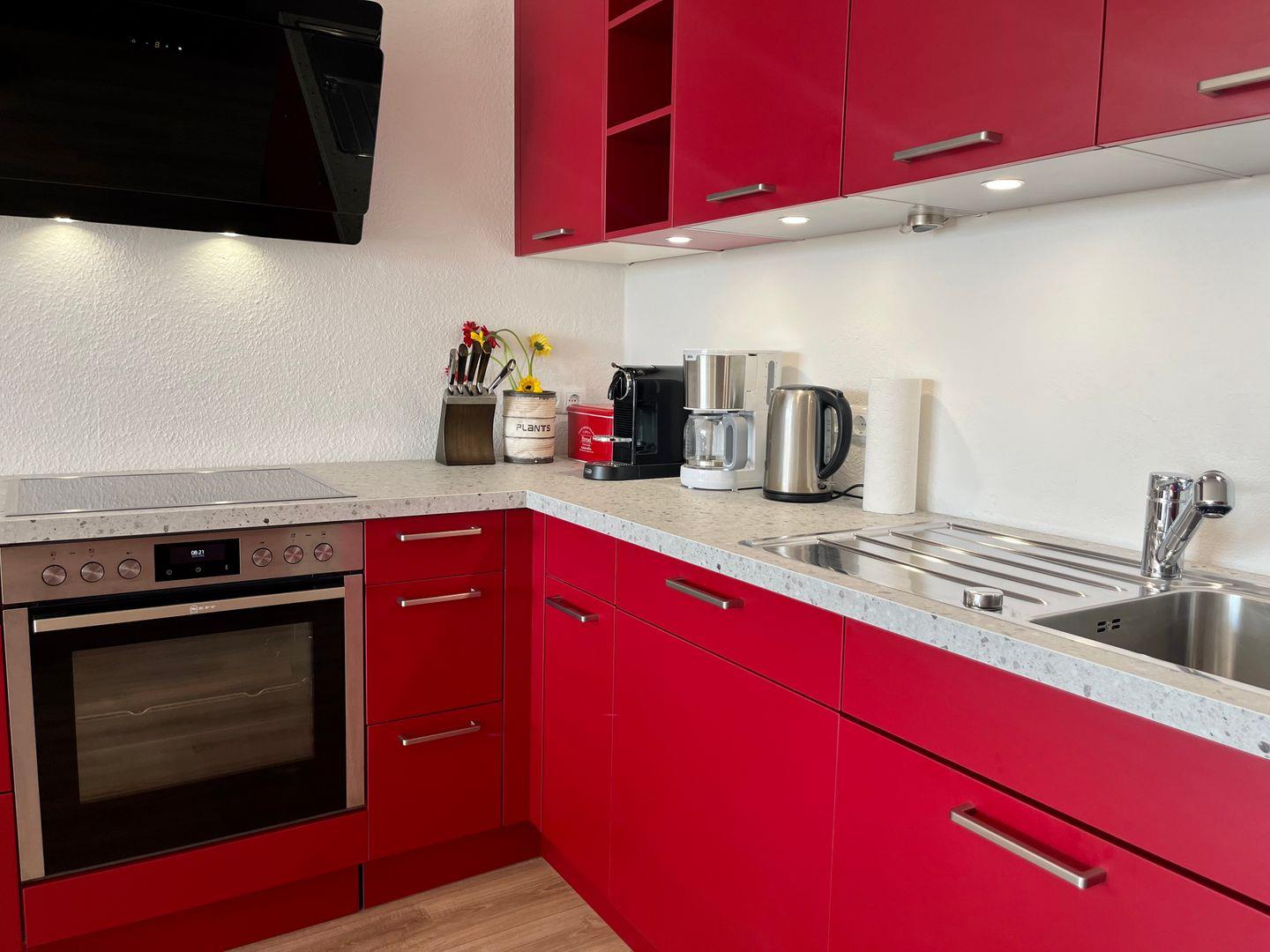Das Apartment bietet Platz für 2 Erwachsene und 2 Kinder. Durch den Flur gelangen Sie in den offenen Wohn- und Essbereich. Die voll ausgestattete, offene Küche lädt zu geselligen Kochabenden ein. Der Esstisch bietet die Möglichkeit, abends gemütlich zusammenzusitzen. Im Wohnbereich finden Sie neben einem Sessel einen modernen Flachbildfernseher, der auch an Regentagen für Gemütlichkeit und Unterhaltung sorgt.